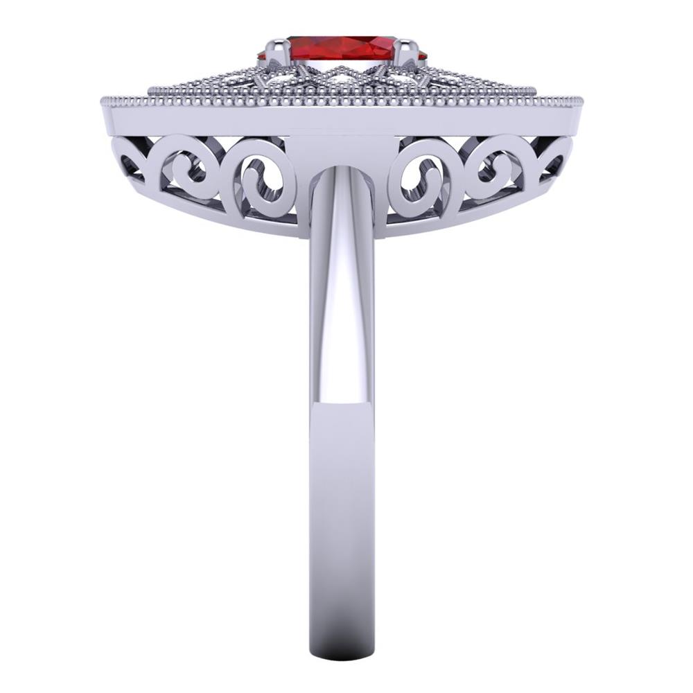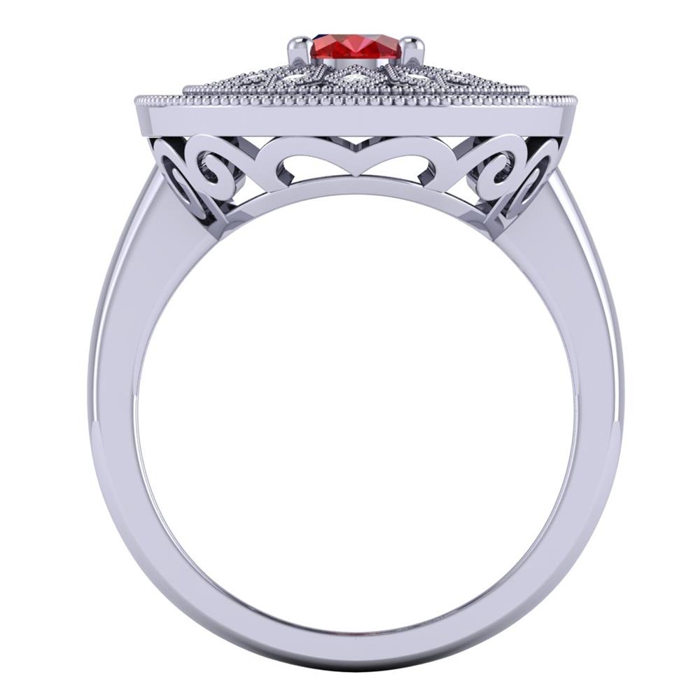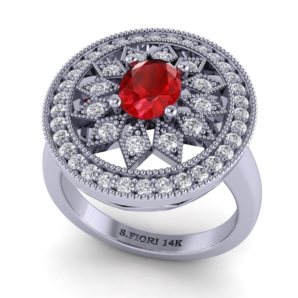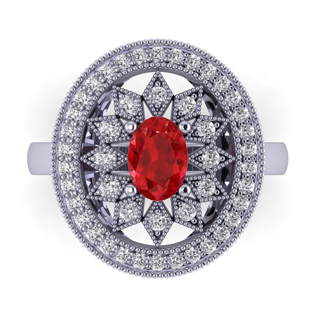 14K Gold Lustrous Red Ruby Rings Featuring 0.63 ct Oval Shaped Lustrous Red Ruby Surrounded by 0.51 cts Round Shaped White Diamond