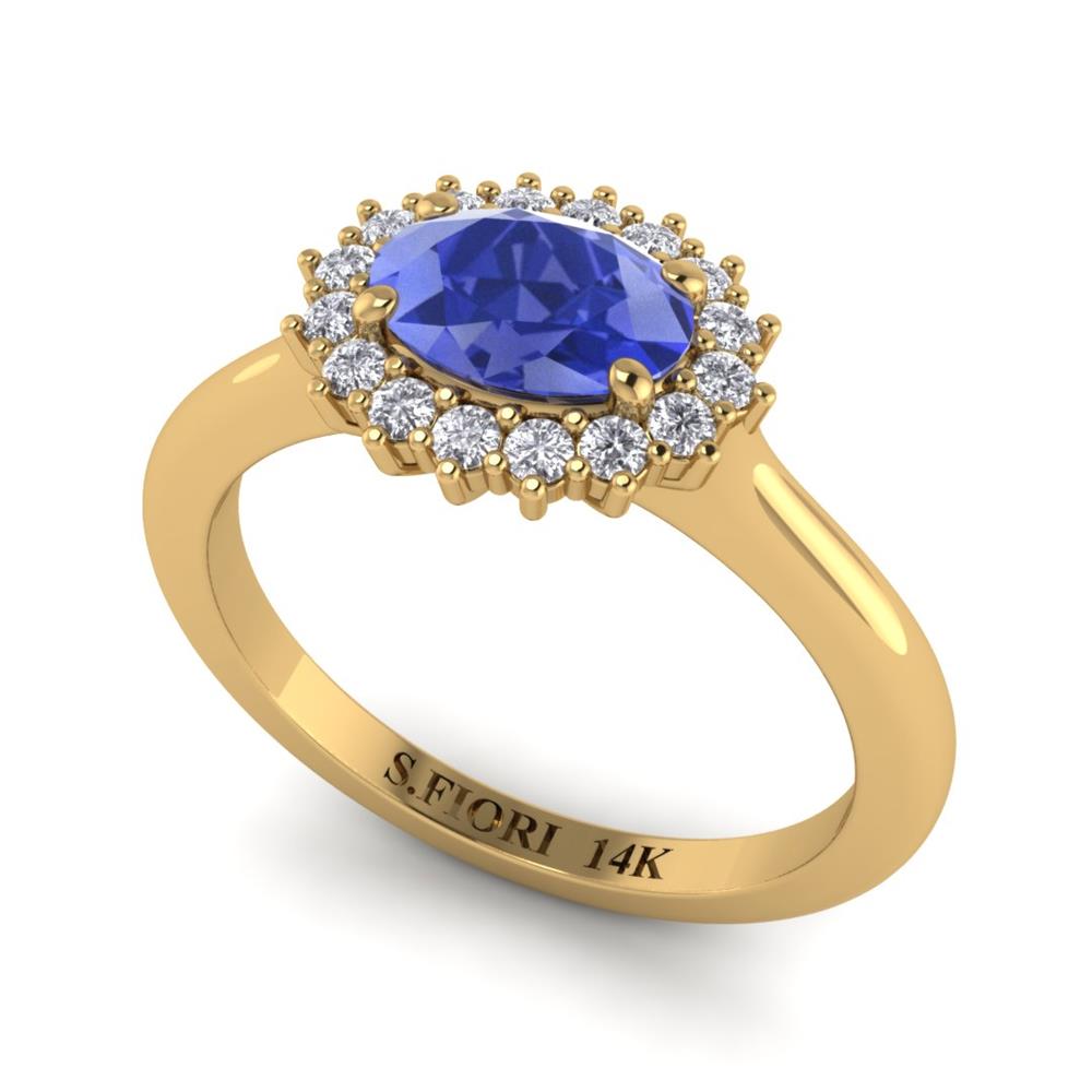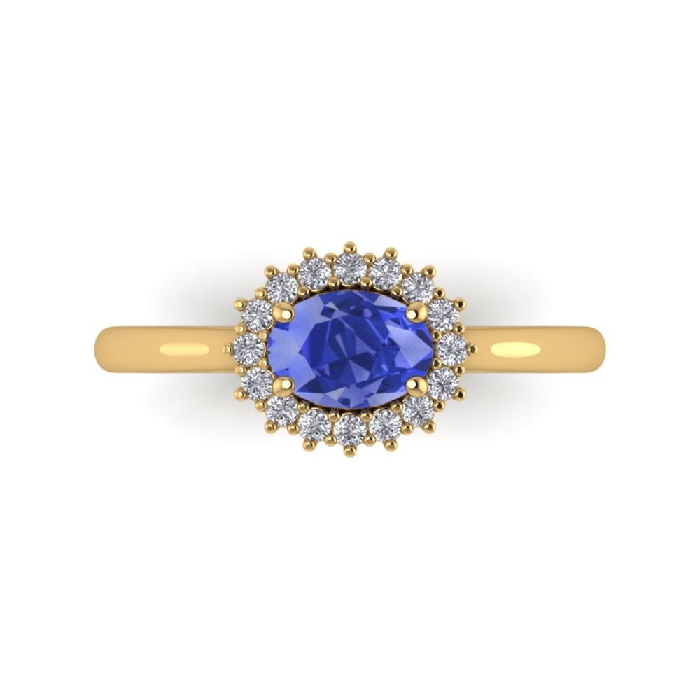 14K Gold Translucent Blue Sapphire Rings Featuring 1.00ct Oval Shaped Blue Sapphire surrounded by 0.17 cts Round Shaped White Diamond