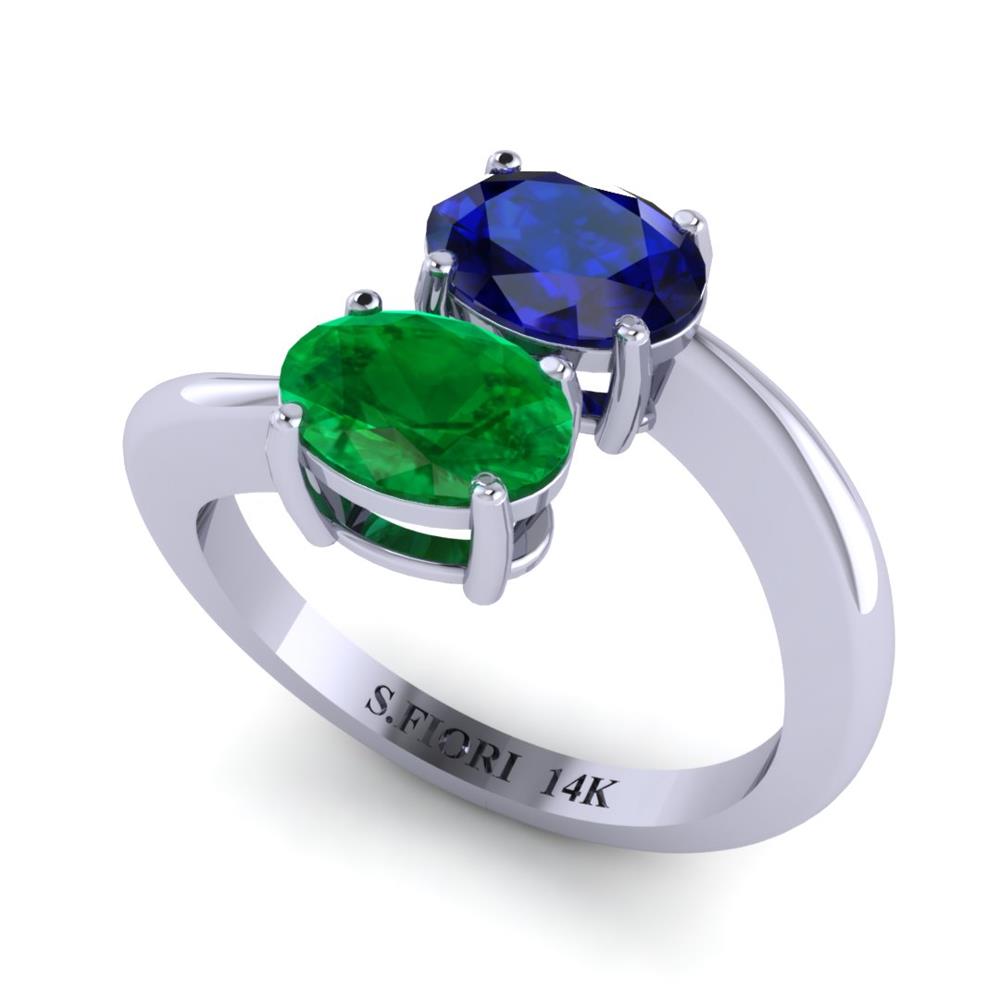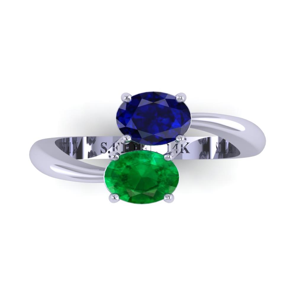 14K Gold Peaceful Aquamarine Rings Featuring 0.66ct Oval Shaped Aquamarine surrounded by 0.66 cts Oval Shaped Blue Sapphire