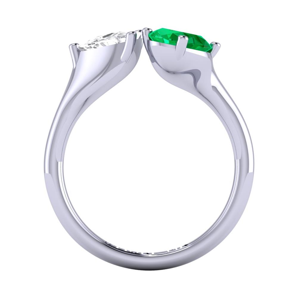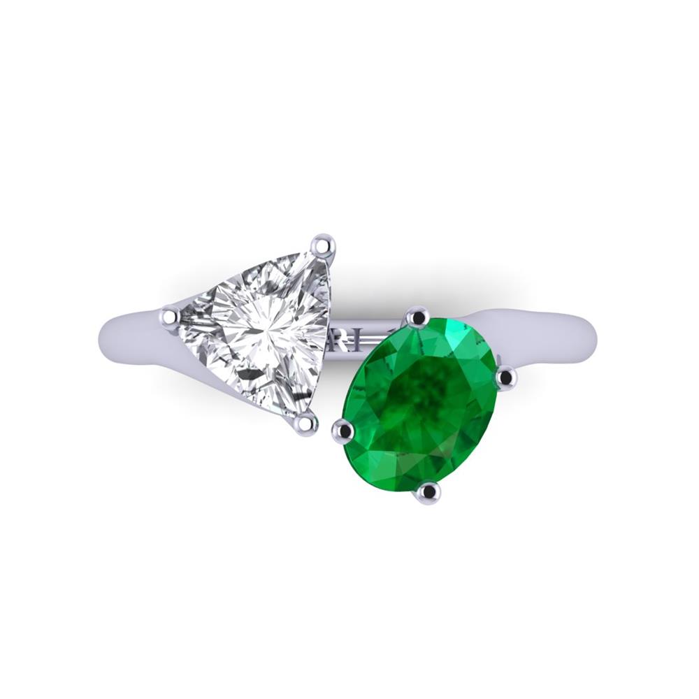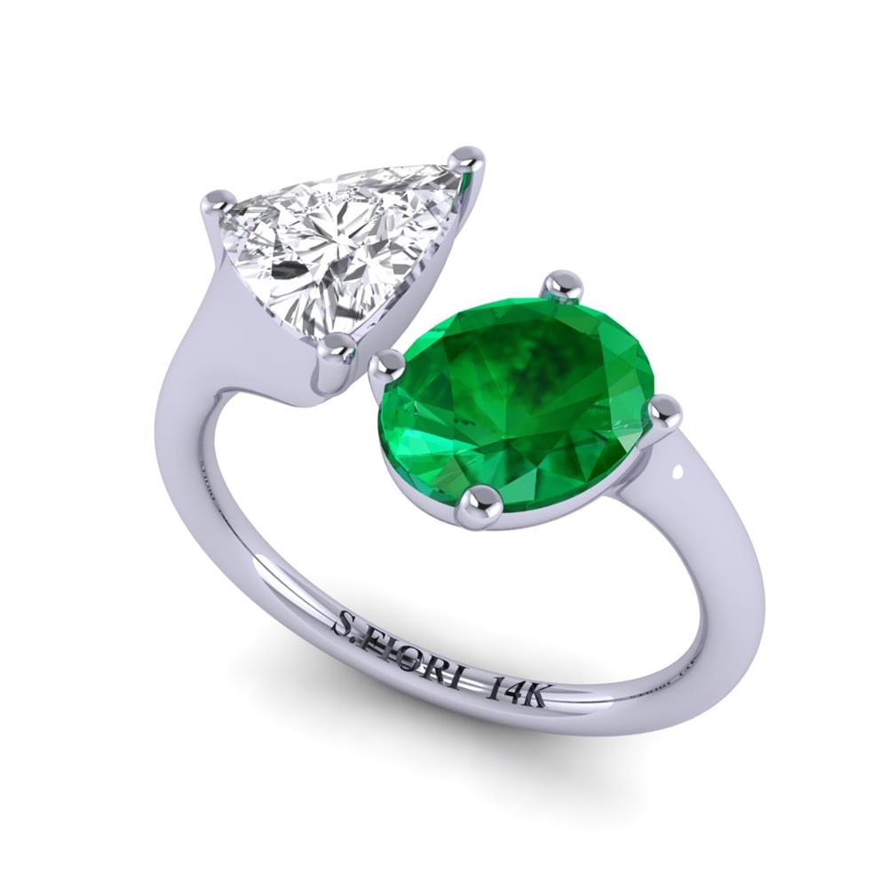 14K Gold Green Emerald Rings Featuring 1.55ct Oval Shaped Green Emerald surrounded by 0.21 cts Trilliant Shaped White Diamond