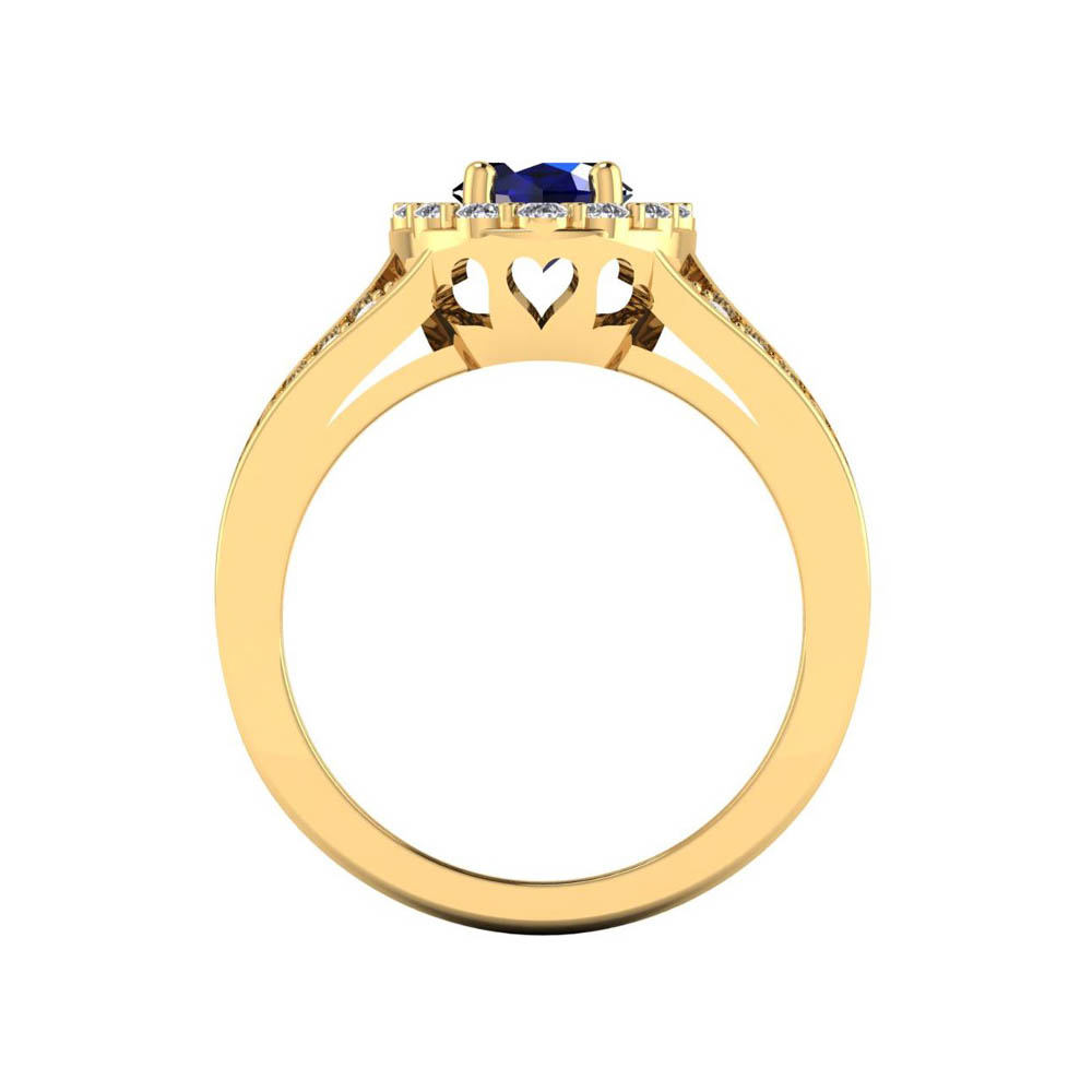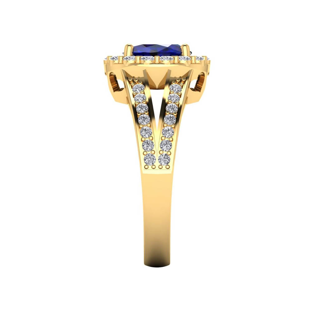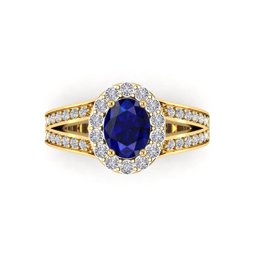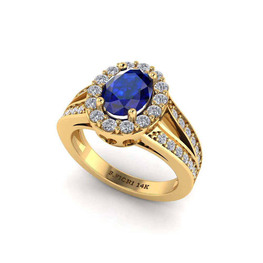 14K Gold Translucent Blue Sapphire Rings Featuring 1.18 Cts Oval Shaped Blue Sapphire Surrounded by 0.76 Cts Round White Diamond