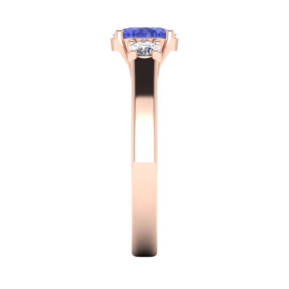 14K Gold Blue Diamond Enhanced Color Three Stone Rings Featuring 0.75 Cts Oval Shaped Blue Diamond Enhanced Color Surrounded by 0.30 Cts Round Brilliant Cut White Diamond
