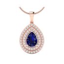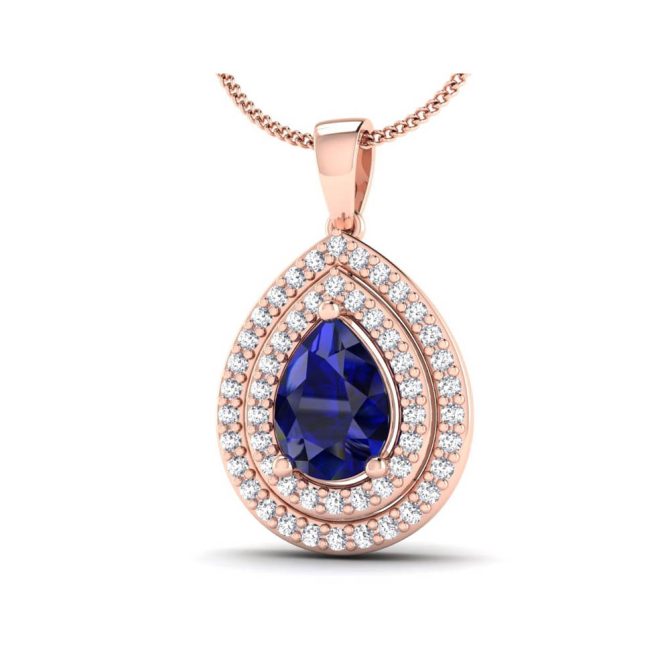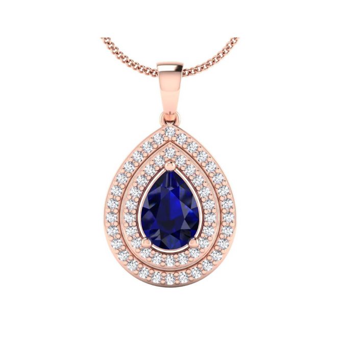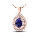 14K Gold Translucent Blue Sapphire Pendant Featuring 0.75 Cts Pear Shaped Blue Sapphire Surrounded by 0.26 Cts Round Cut White Diamond
