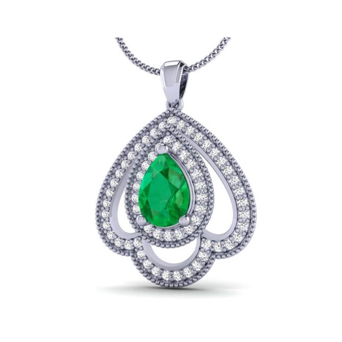14K Gold Translucent Blue Sapphire Pendant Featuring 0.75 Cts Pear Shaped Blue Sapphire Surrounded by 0.32 Cts Round Cut White Diamond