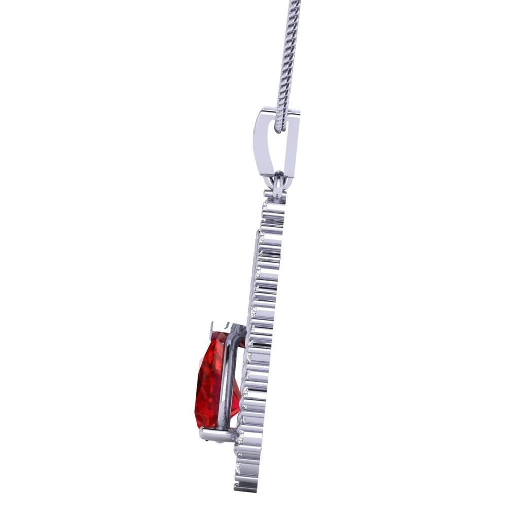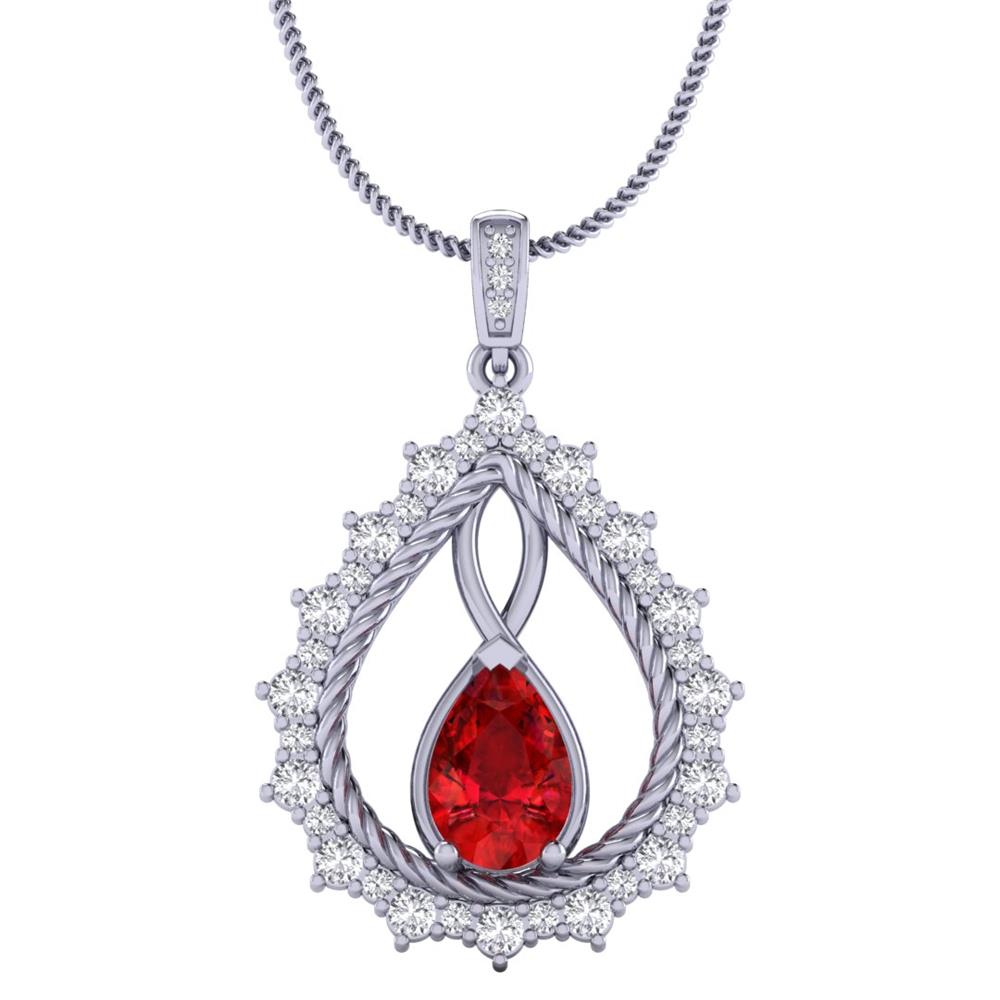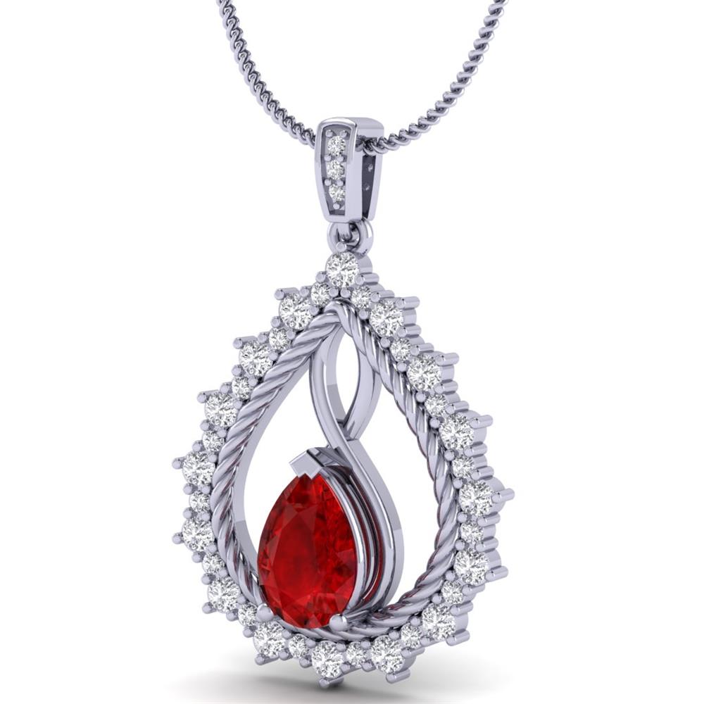 14K Gold Lustrous Red Ruby Pendant Featuring 1.20 Pear Shaped Lustrous Red Ruby Surrounded by 0.63 cts Round Shaped White Diamond