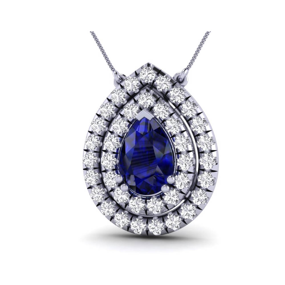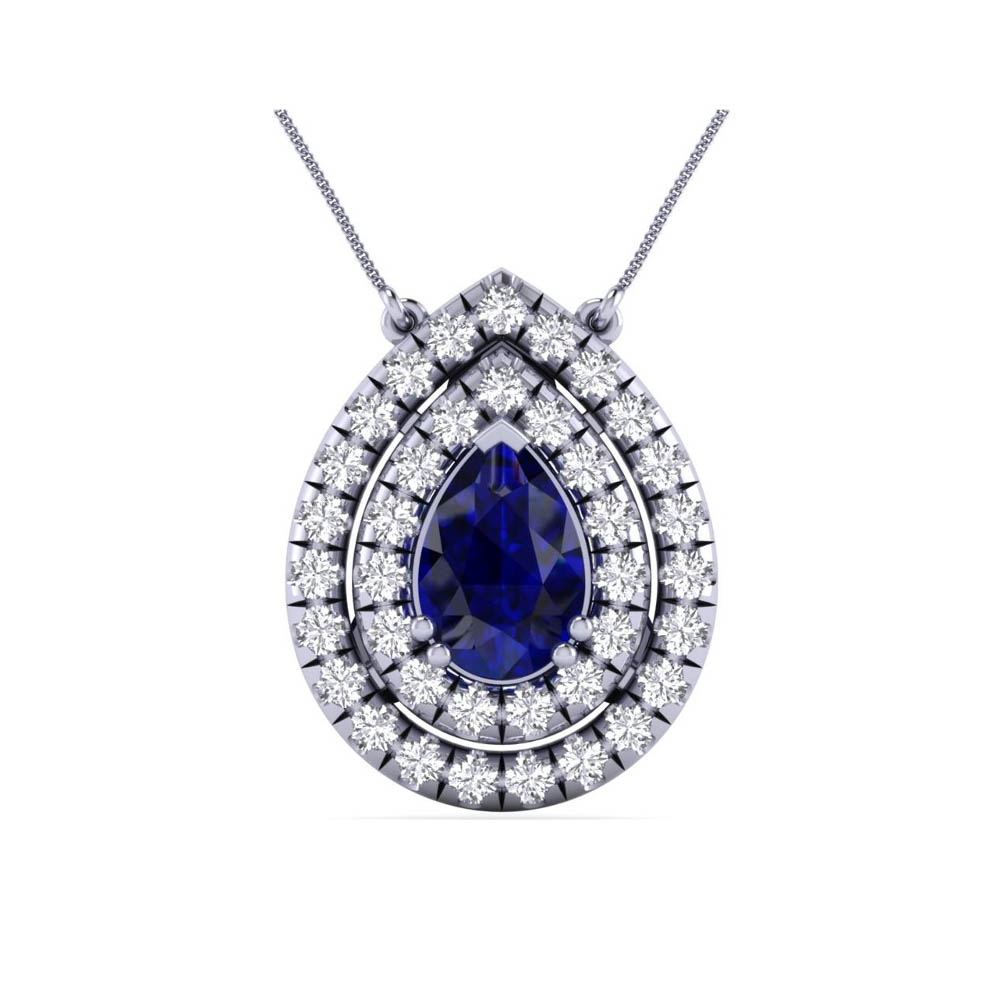 14K Gold Translucent Blue Sapphire Pendant Featuring 1.20 Pear Shaped Translucent Blue Sapphire surrounded by 0.95 Round Cut White Diamond
