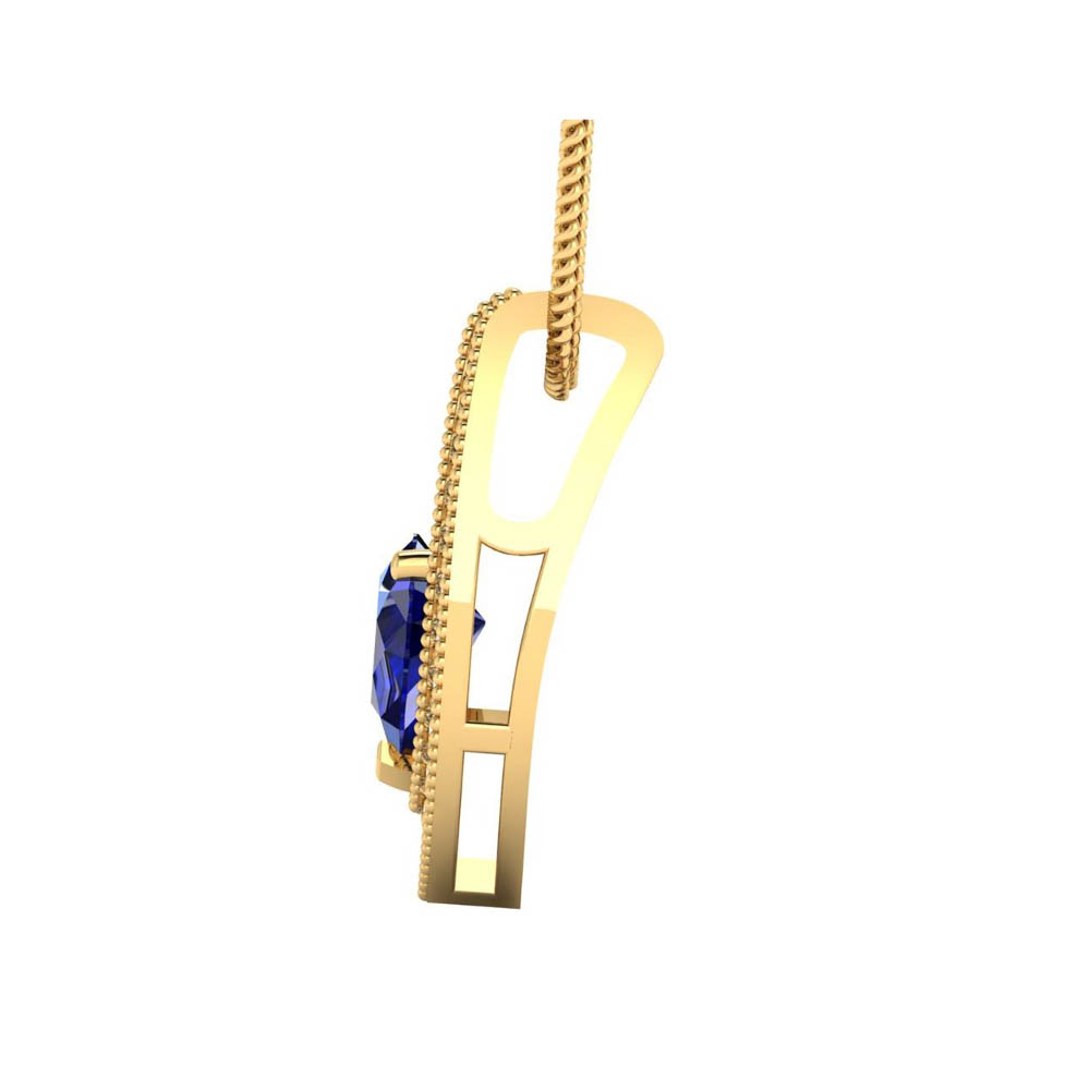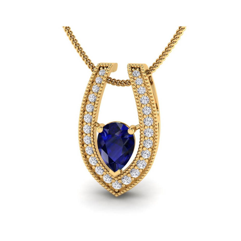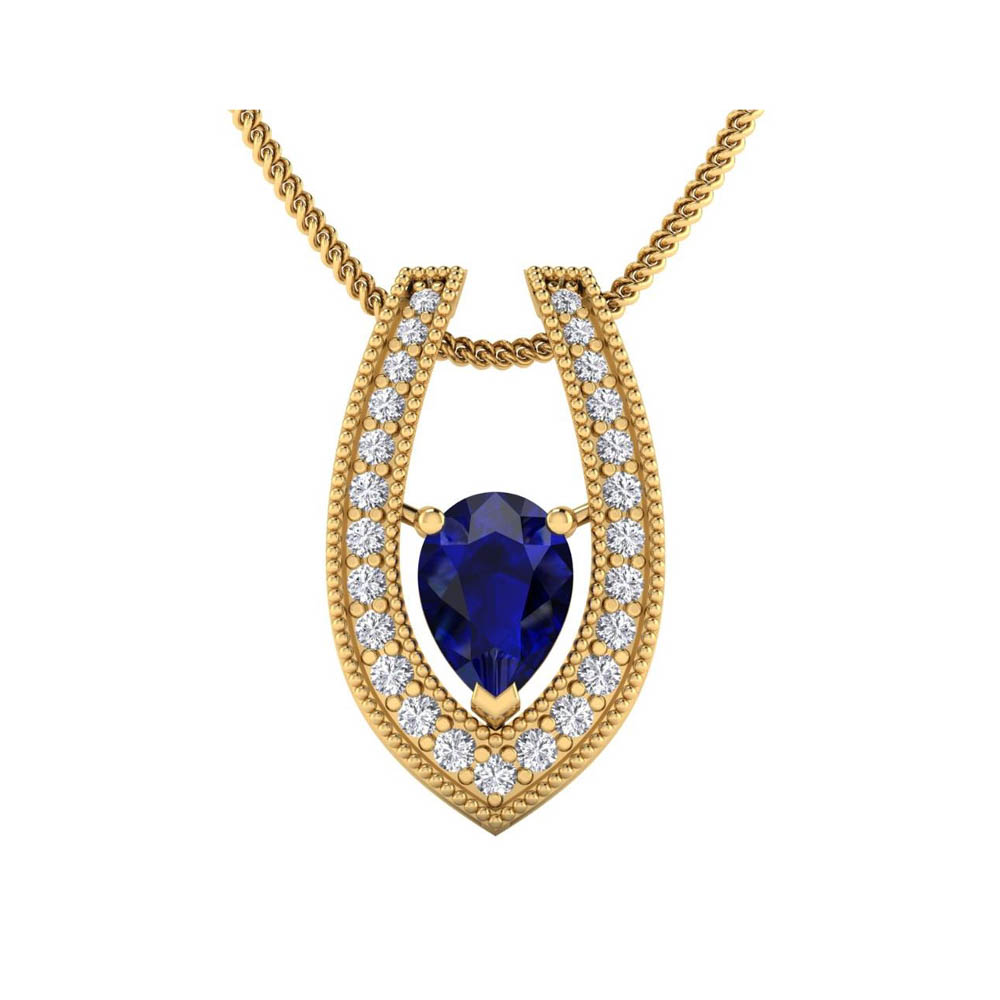 14K Gold Translucent Blue Sapphire Pendants Featuring 0.85 Cts Pear Shaped Translucent Blue Sapphire Surrounded by 0.19 cts Round Shaped White Diamond