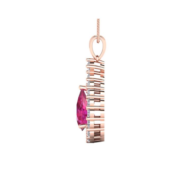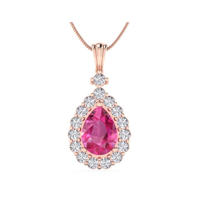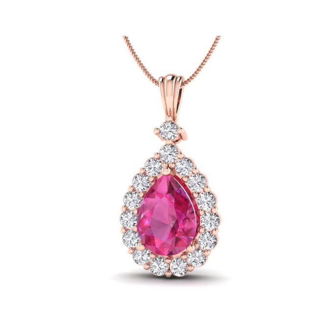 14K Gold Majestic Pink Sapphire Pendants Featuring 2.04 Cts Pear Shaped Pink Sapphire Surrounded by 0.82 cts Round Shaped White Diamond