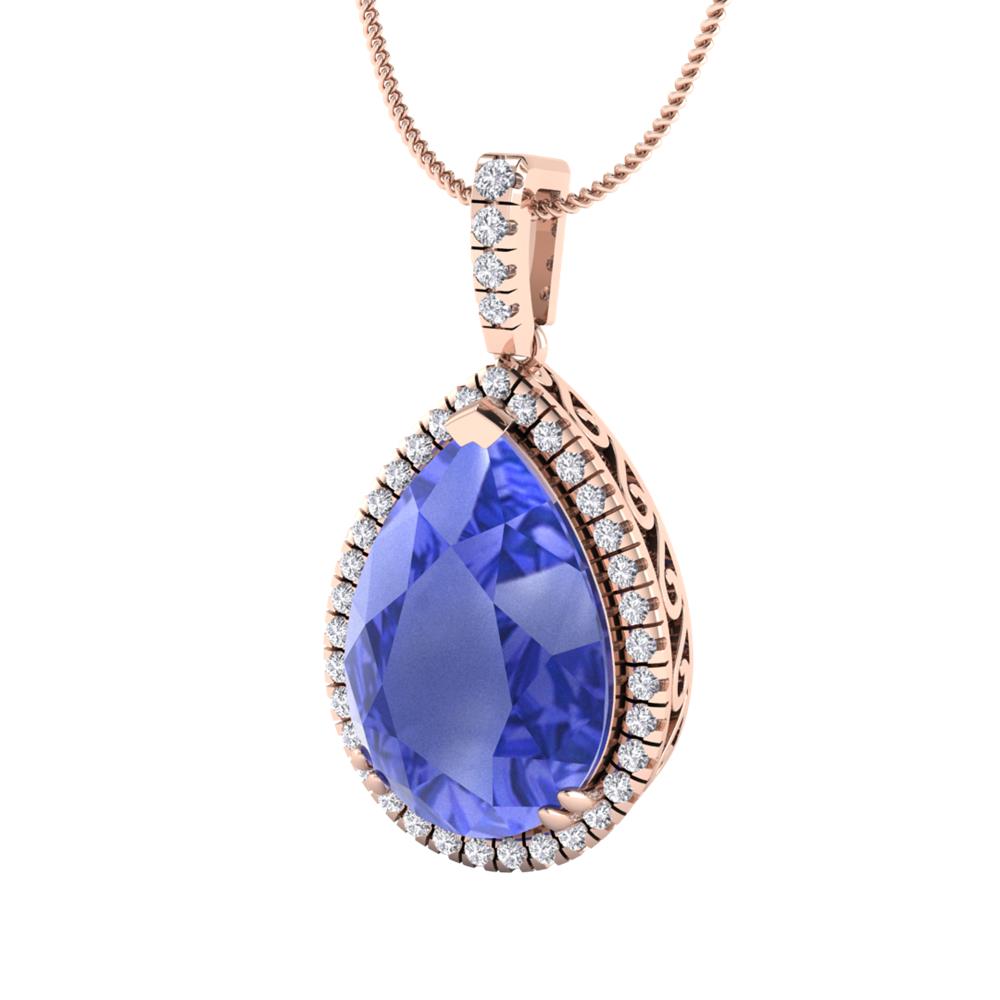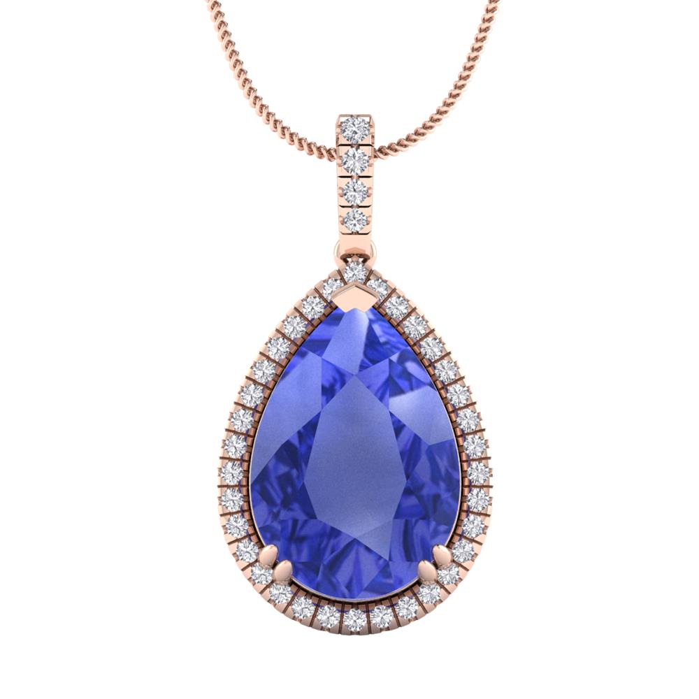 14K Gold Adorable Tanzanite Pendants Featuring 20.75ct Pear Shaped Tanzanite surrounded by 0.51 cts Round Shaped White Diamond