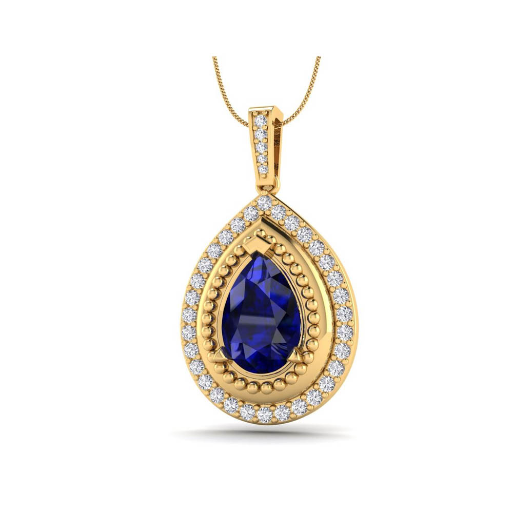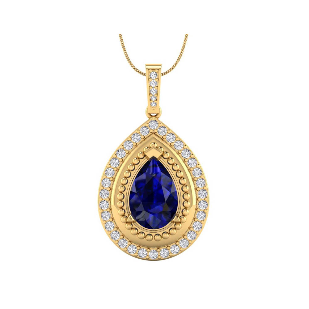 14K Gold Translucent Blue Sapphire Pendants Featuring 5.00 Cts Pear Shaped Translucent Blue Sapphire surrounded by 0.71 cts Round Shaped White Diamond