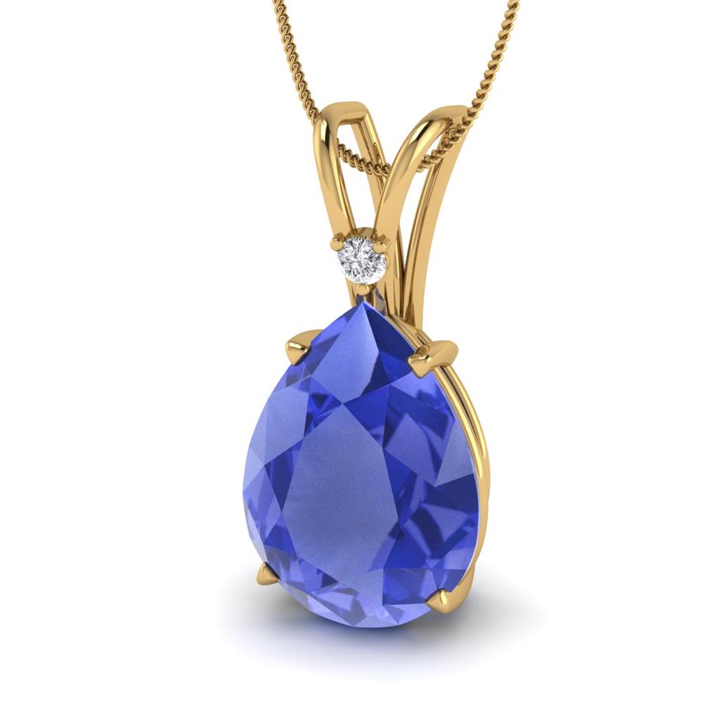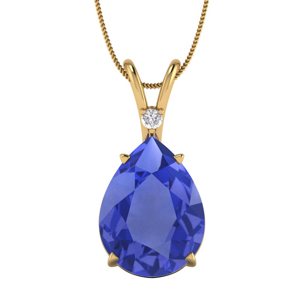 14K Gold Translucent Blue Sapphire Pendants Featuring 7.50ct Pear Shaped Blue Sapphire surrounded by 0.10 cts Round Shaped White Diamond