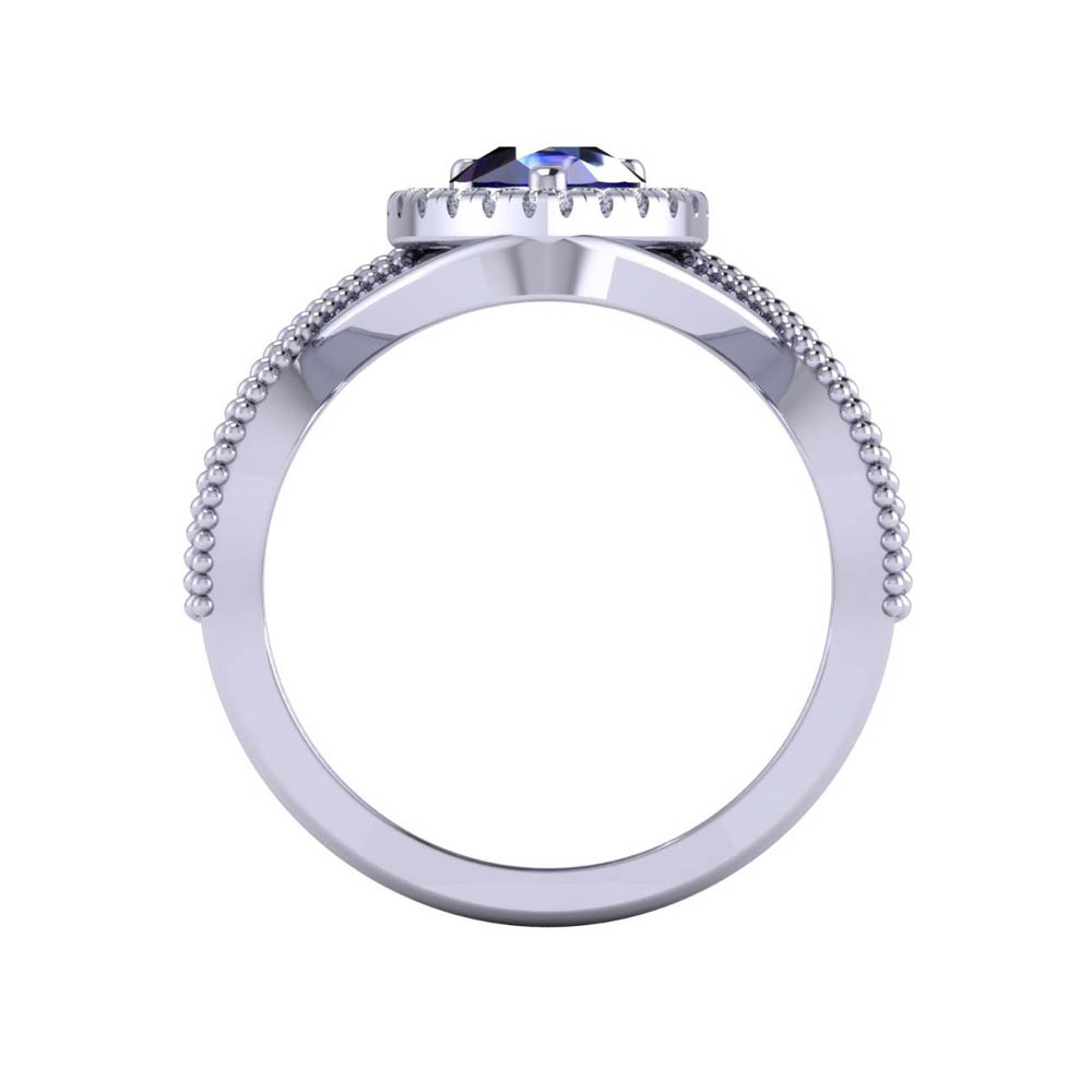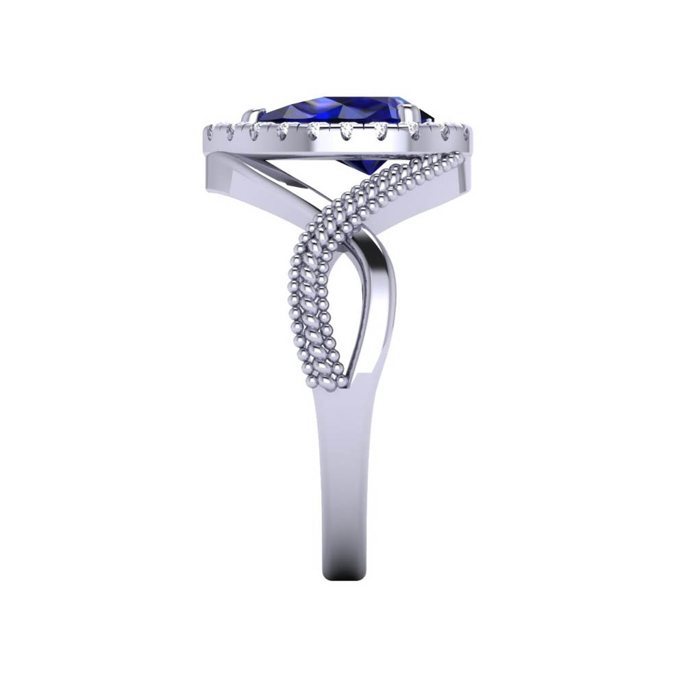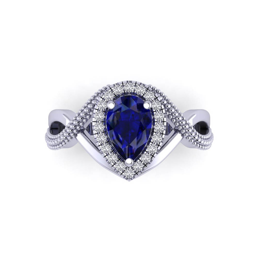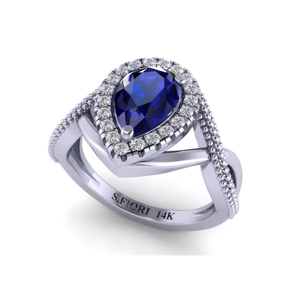 14K Gold Translucent Blue Sapphire Ring Featuring 1.20 Cts Pear Shaped Blue Sapphire surrounded by 0.16 Cts Round Cut White Diamond