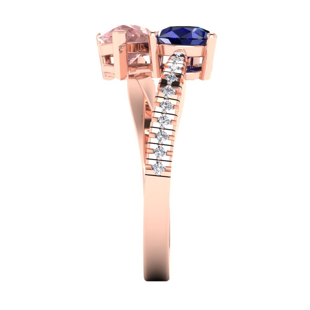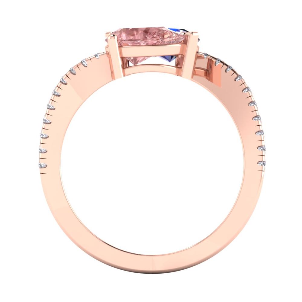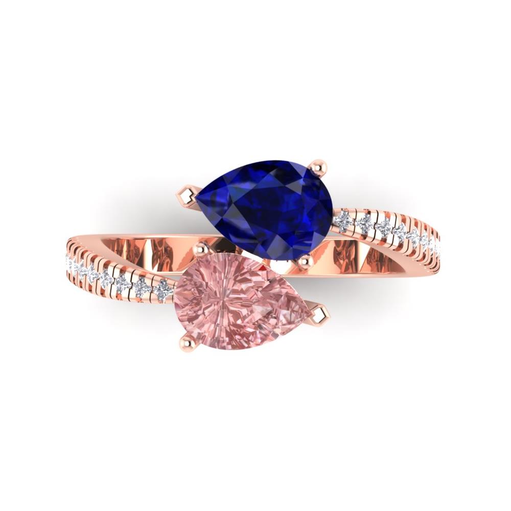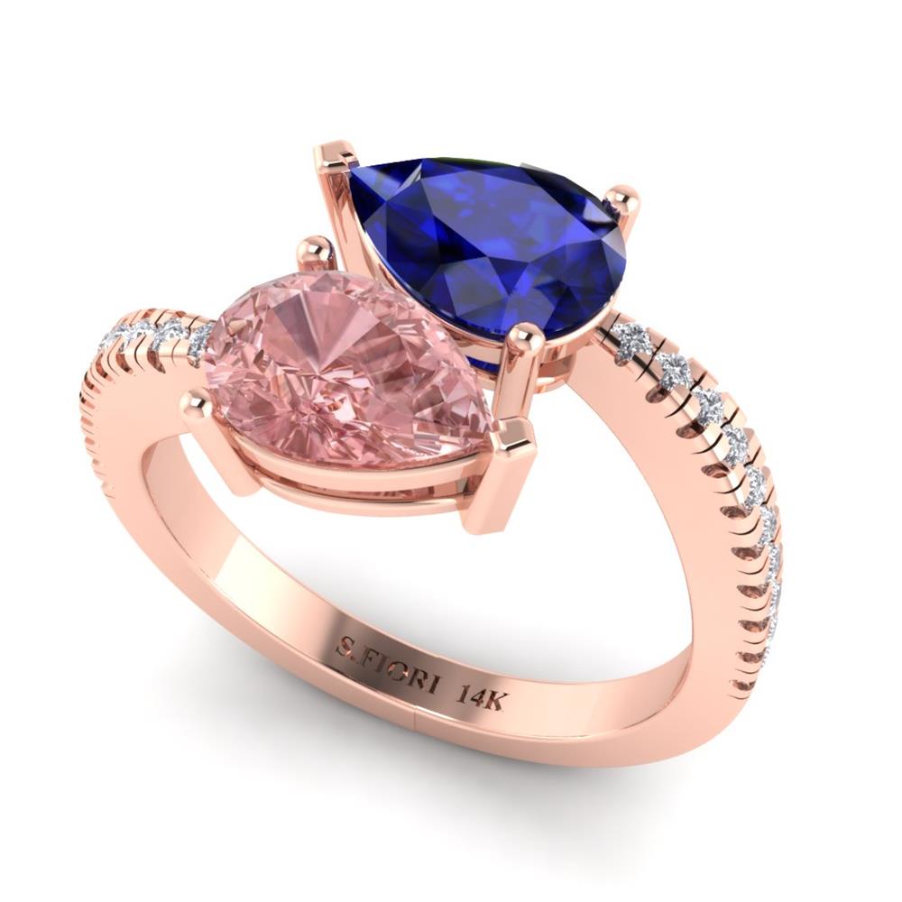 14K Gold Green Emerald Ring Featuring 0.84 Pear Shaped Green Emerald surrounded by 0.78 cts Pear Shaped Blue Sapphire, 0.15 cts Round Shaped White Diamond