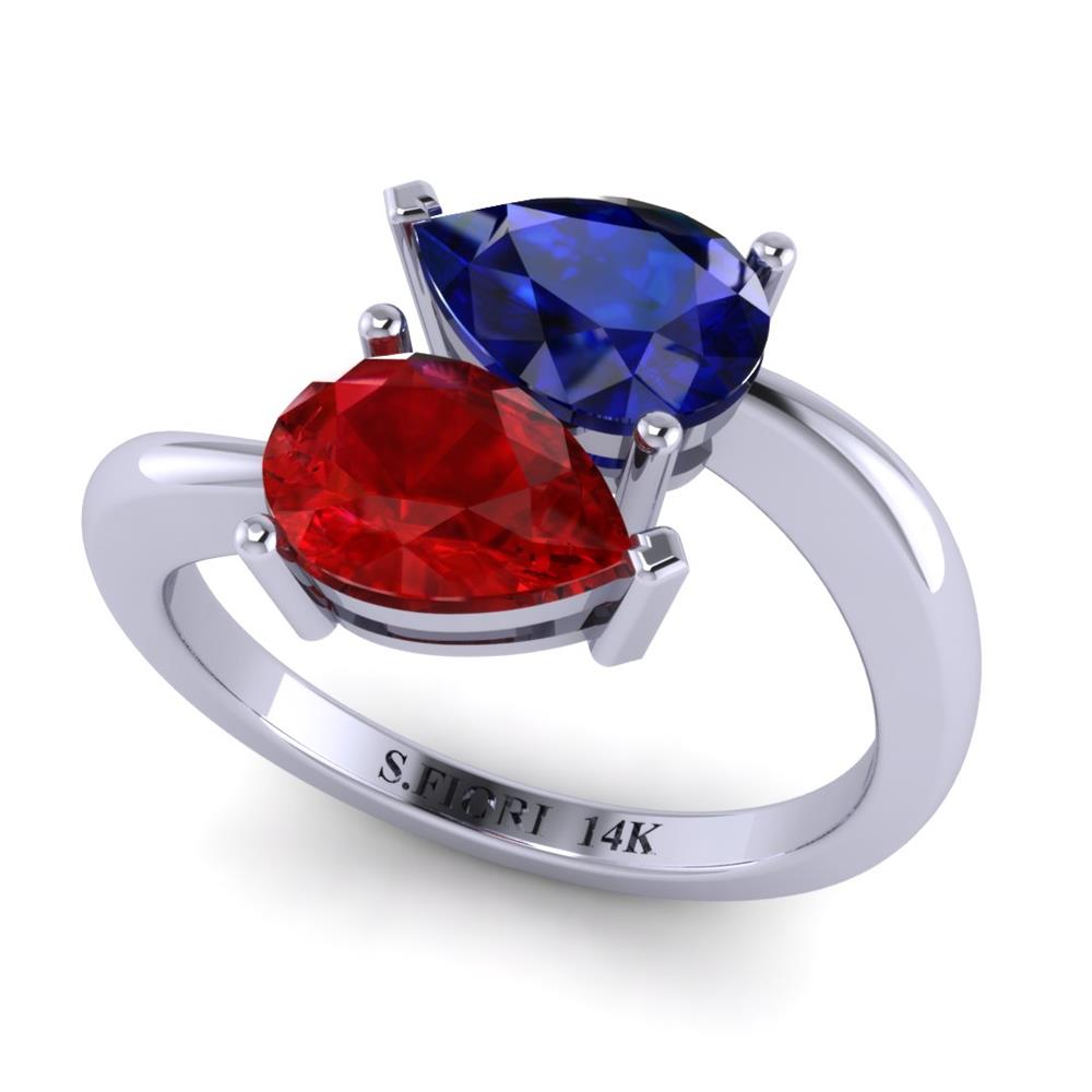 14K Gold Translucent Blue Sapphire Rings Featuring 0.84ct Pear Shaped Blue Sapphire surrounded by 0.78 cts Pear Shaped Blue Sapphire