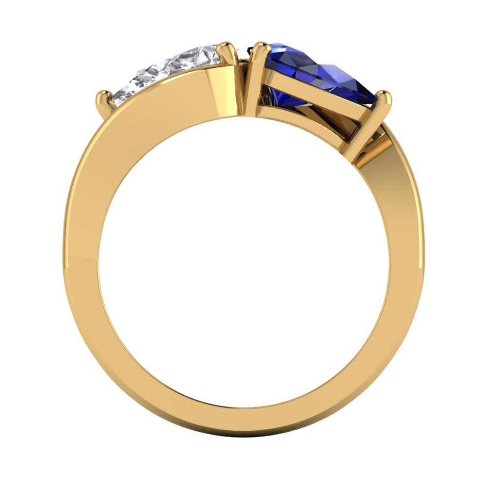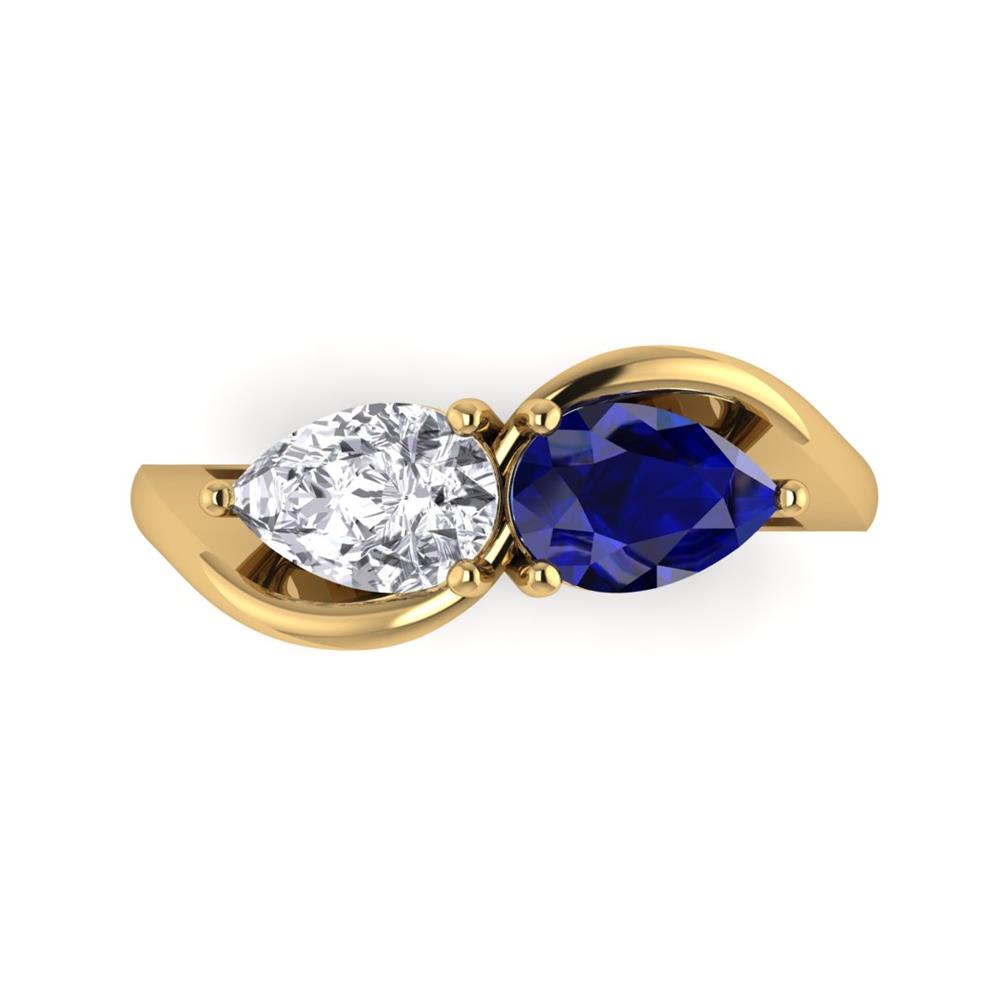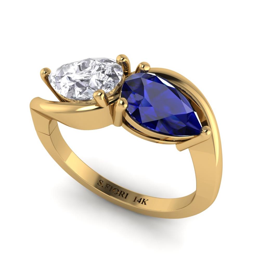 14K Gold Stunning White Diamond Rings Featuring 0.95ct Pear Shaped White Diamond surrounded by 1.05 cts Pear Shaped Green Emerald