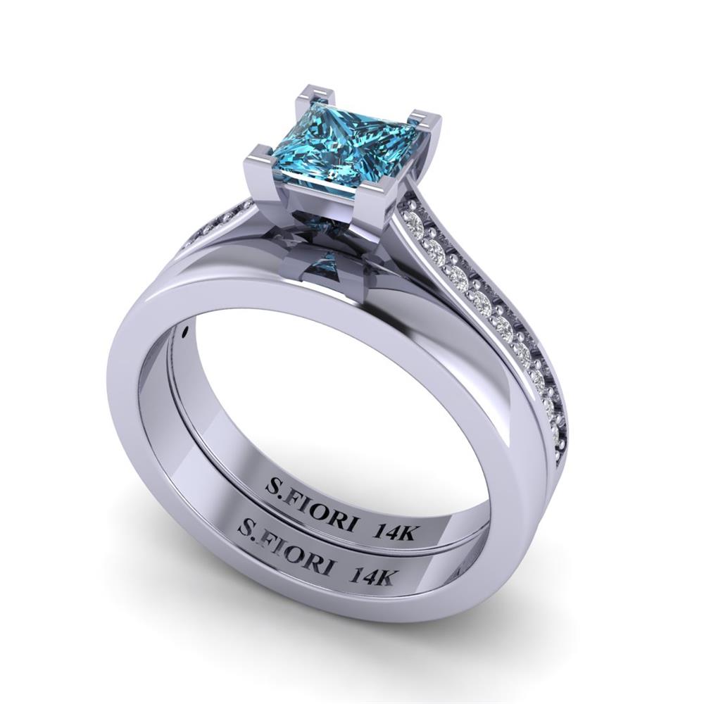 14K Gold Stunning White Diamond Bridal Collection Rings Featuring 0.75 Cts Princess Shaped White Diamond surrounded by 0.18 Round White Diamond