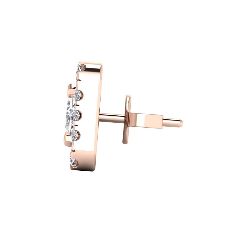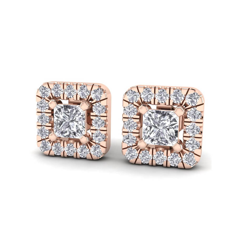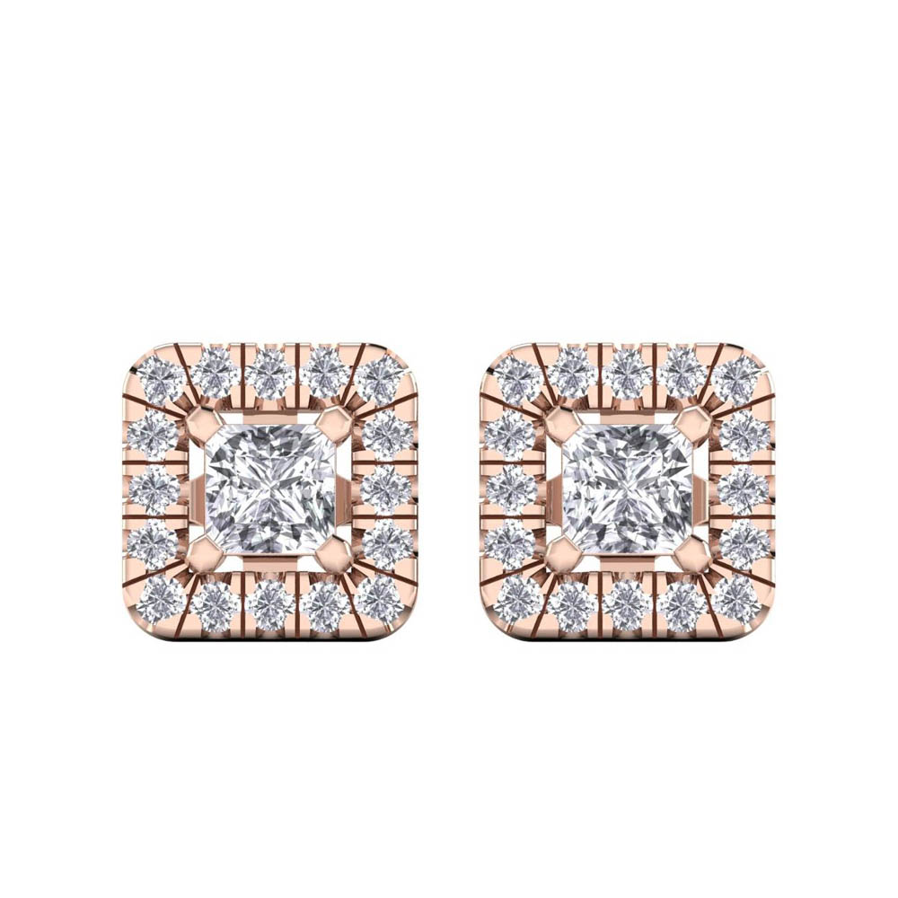 14K Gold Stunning White Diamond Earrings Featuring 0.52 Cts Princess Shaped White Diamond Surrounded by 0.21 Round White Diamond