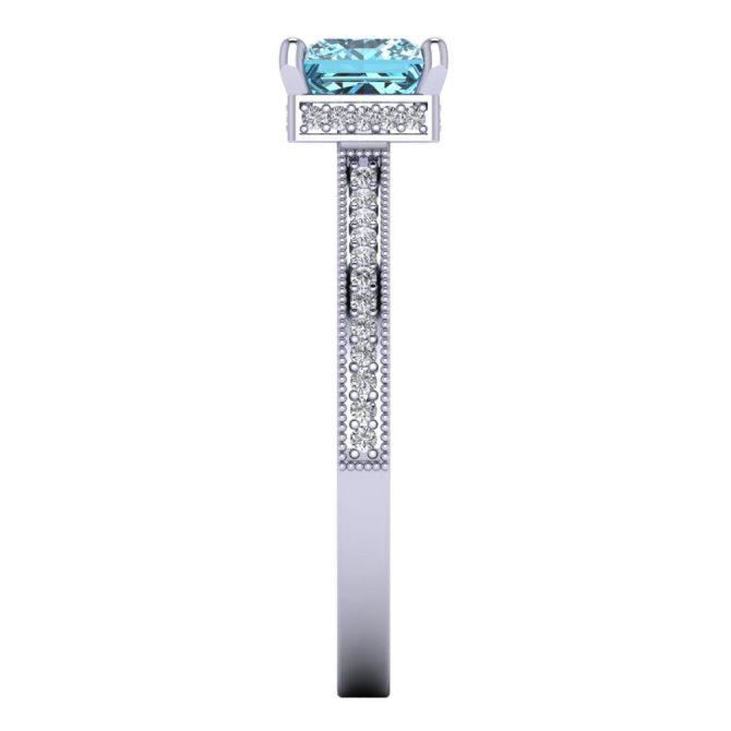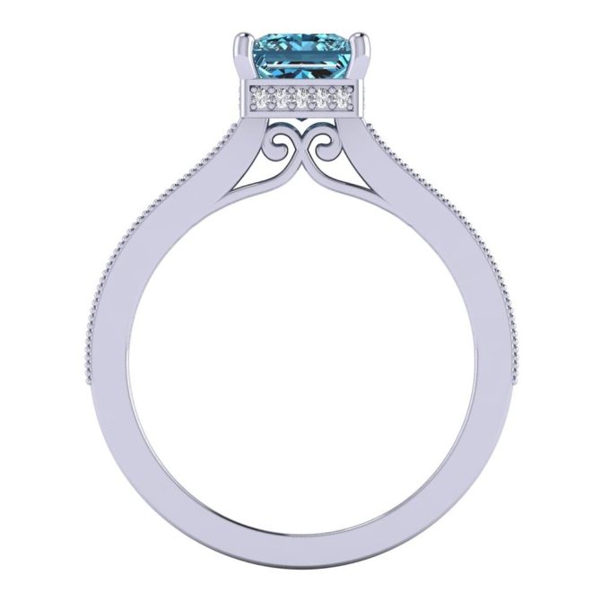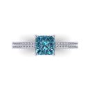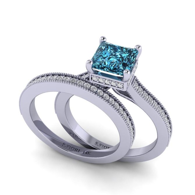 14K Gold Blue Diamond Enhanced Color Ring Featuring 1.50 Princess Shaped Blue Diamond Enhanced Color surrounded by 0.19 cts Round Shaped White Diamond