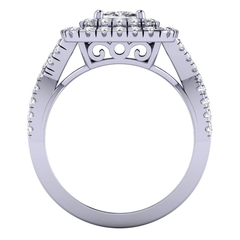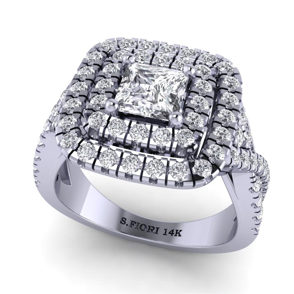 14K Gold Stunning White Diamond Rings Featuring 0.75 ct Princess Shaped Stunning White Diamond surrounded by 0.99 cts Round Shaped White Diamond
