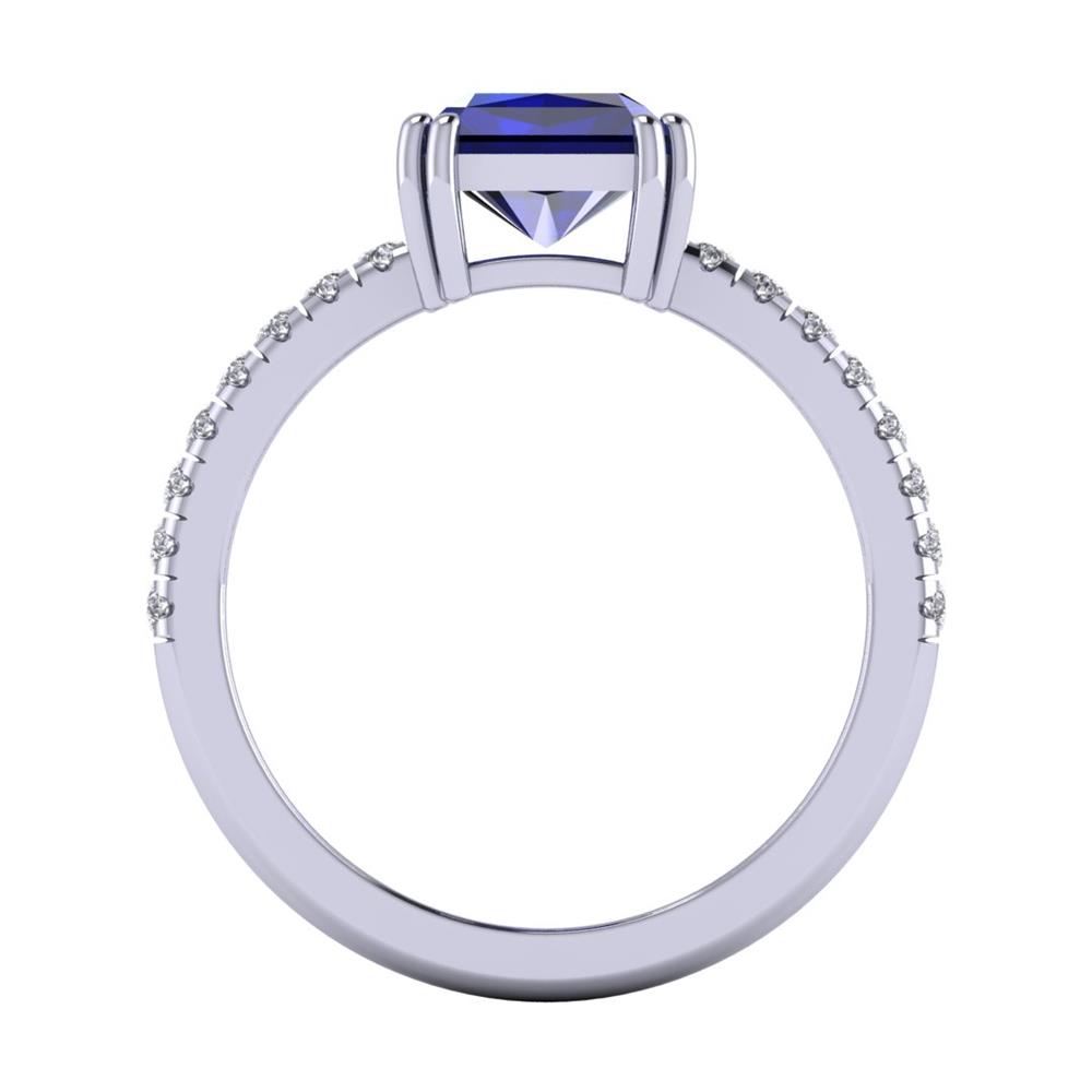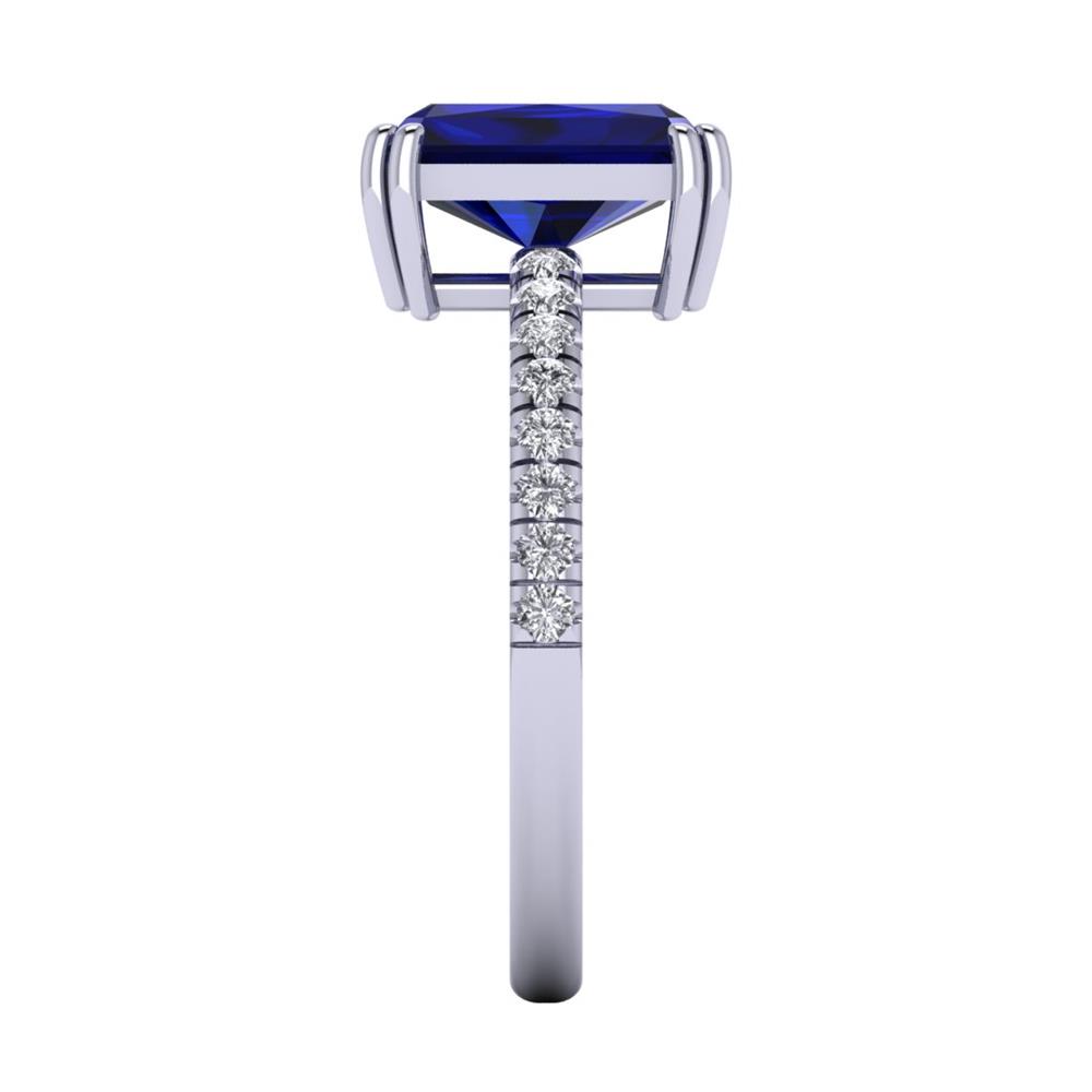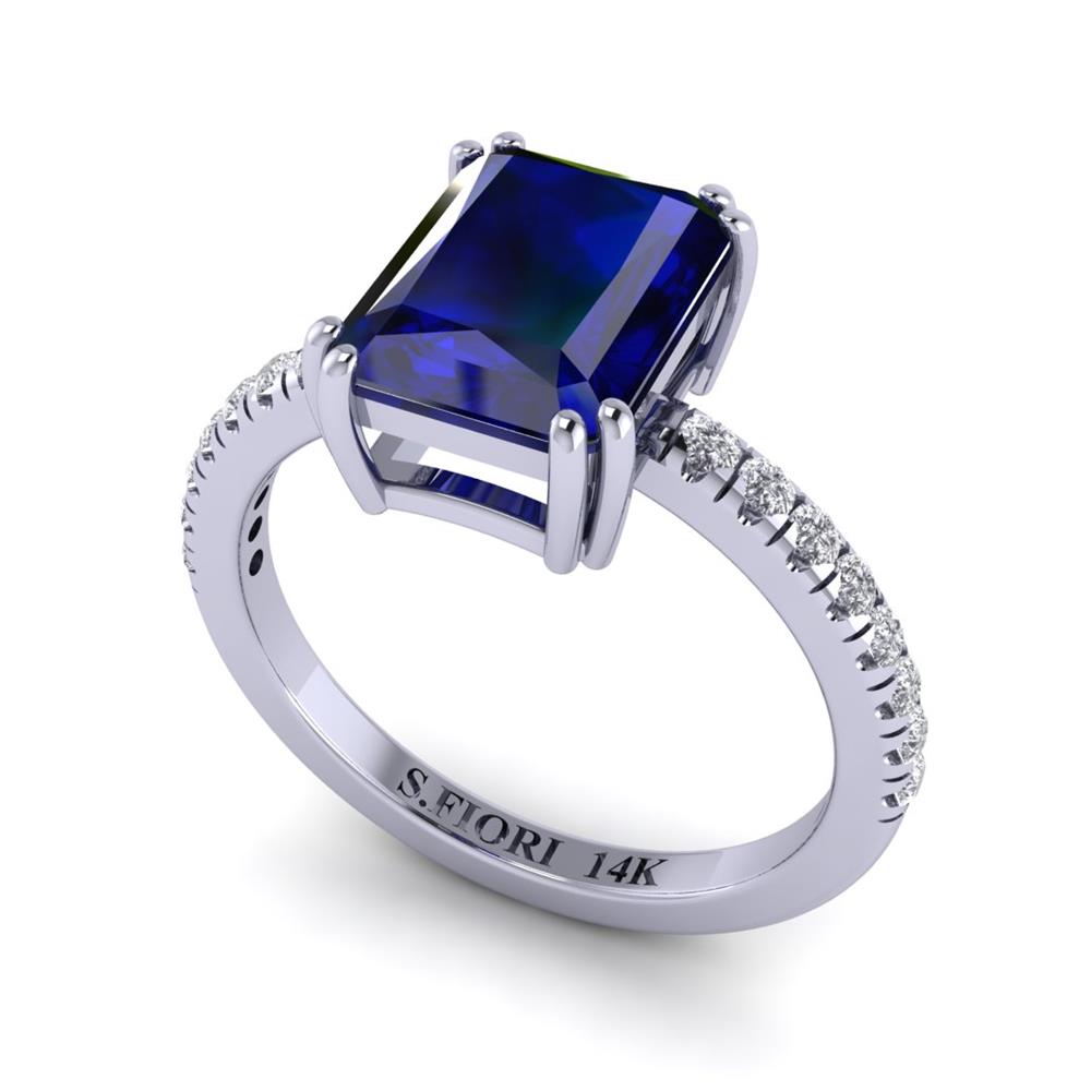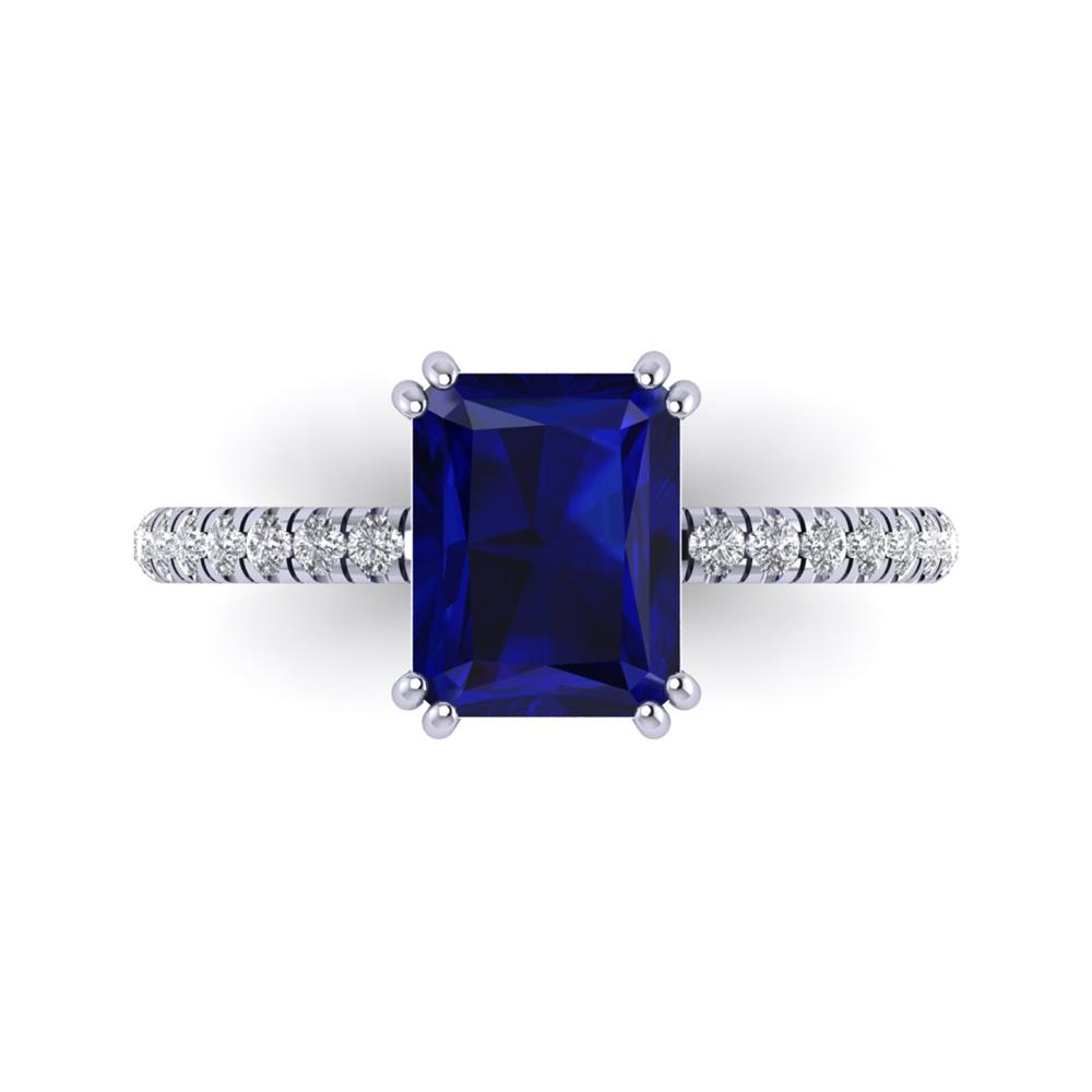 14K Gold Translucent Blue Sapphire Ring Featuring 3.00 Radiant Shaped Translucent Blue Sapphire surrounded by 0.25 Round White Diamond