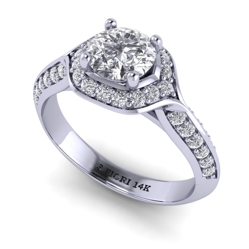 14K Gold Stunning White Diamond Bridal Ring Featuring 0.65 cts Round Brilliant Cut Stunning White Diamond surrounded by 0.778 cts Round Shaped White Diamond