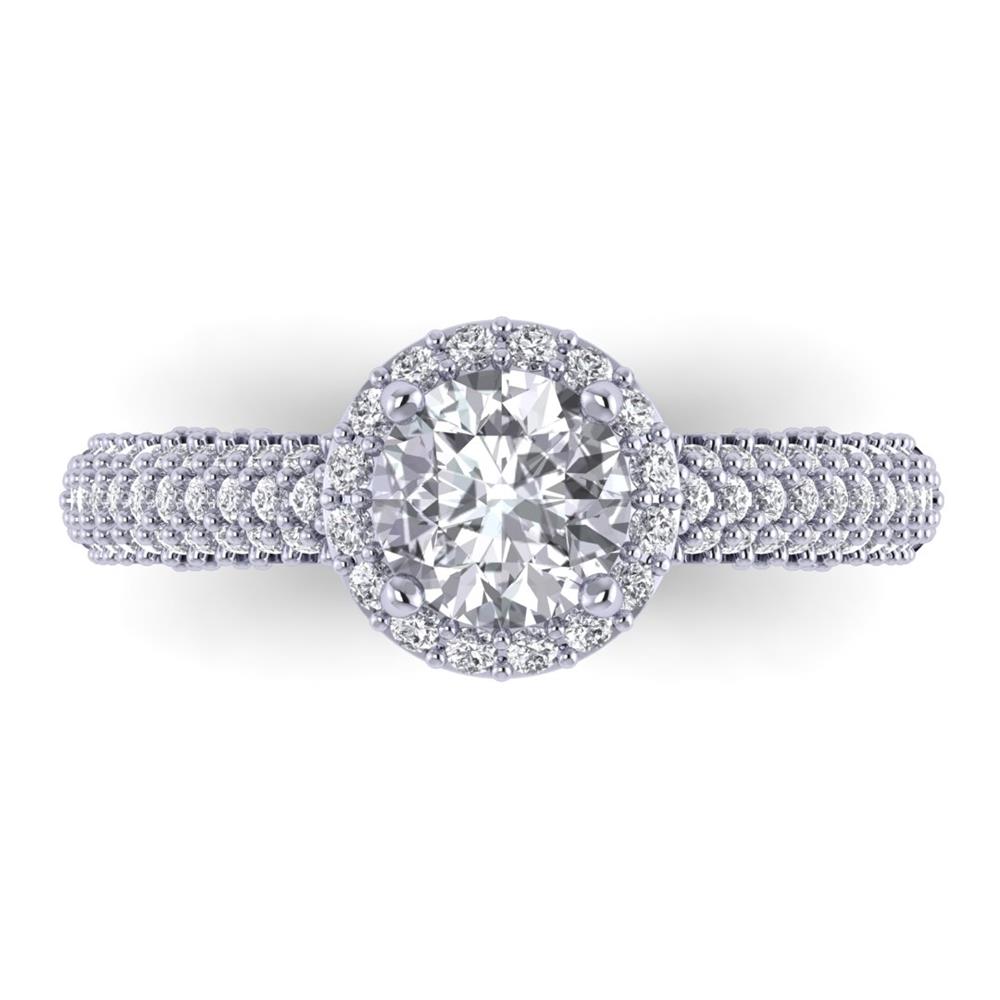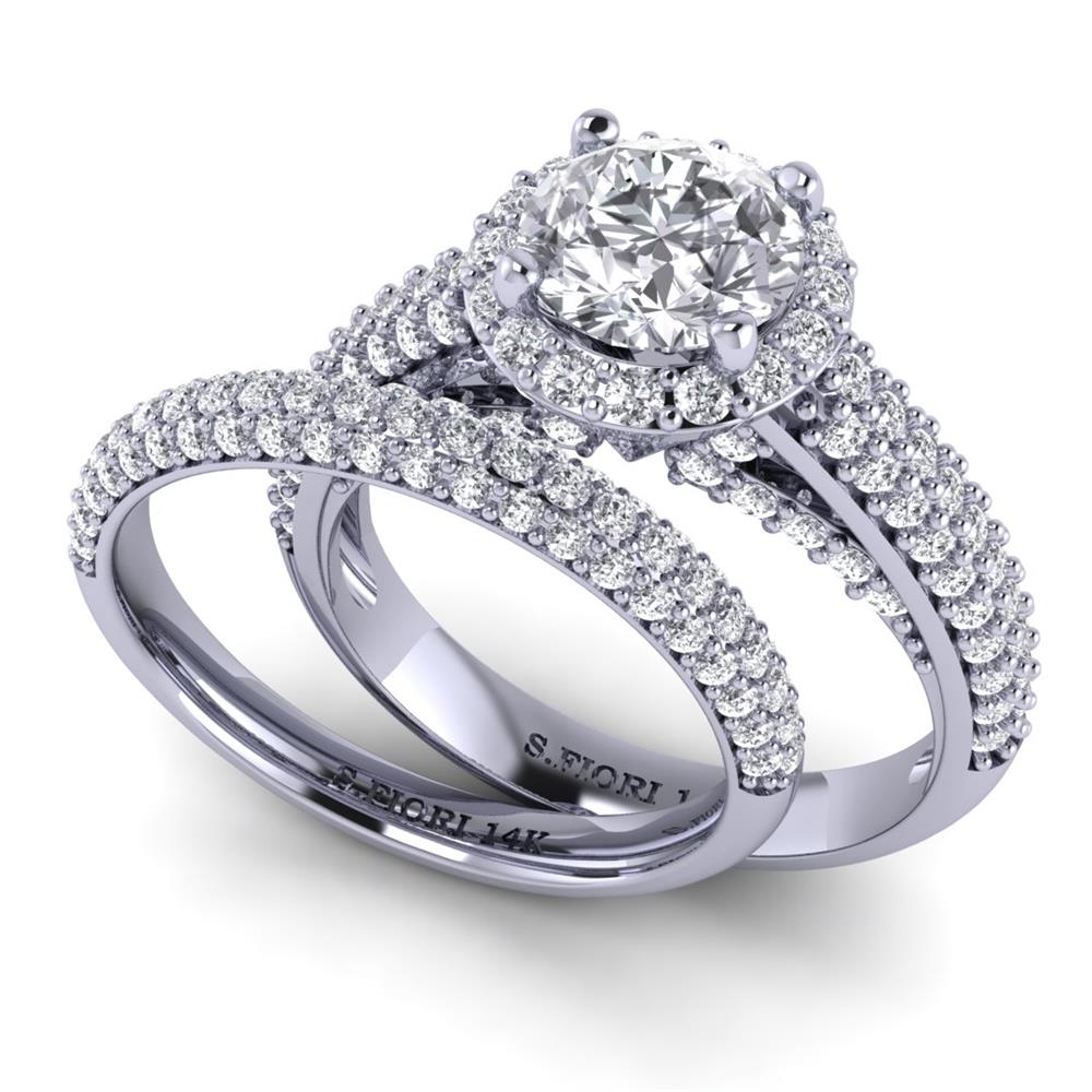 14K Gold Stunning White Diamond Bridal Ring Featuring 0.93 cts Round Brilliant Cut Stunning White Diamond surrounded by 1.431 cts Round Shaped White Diamond