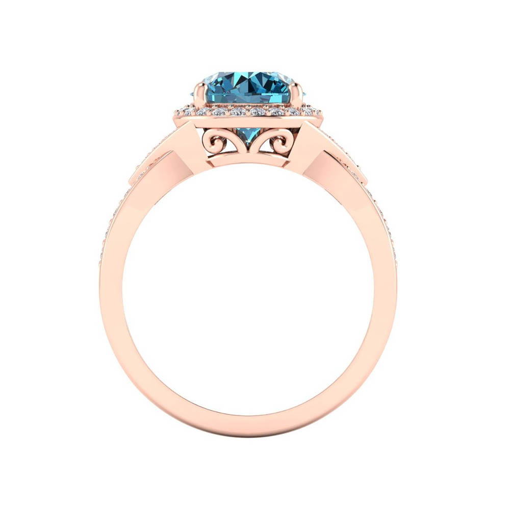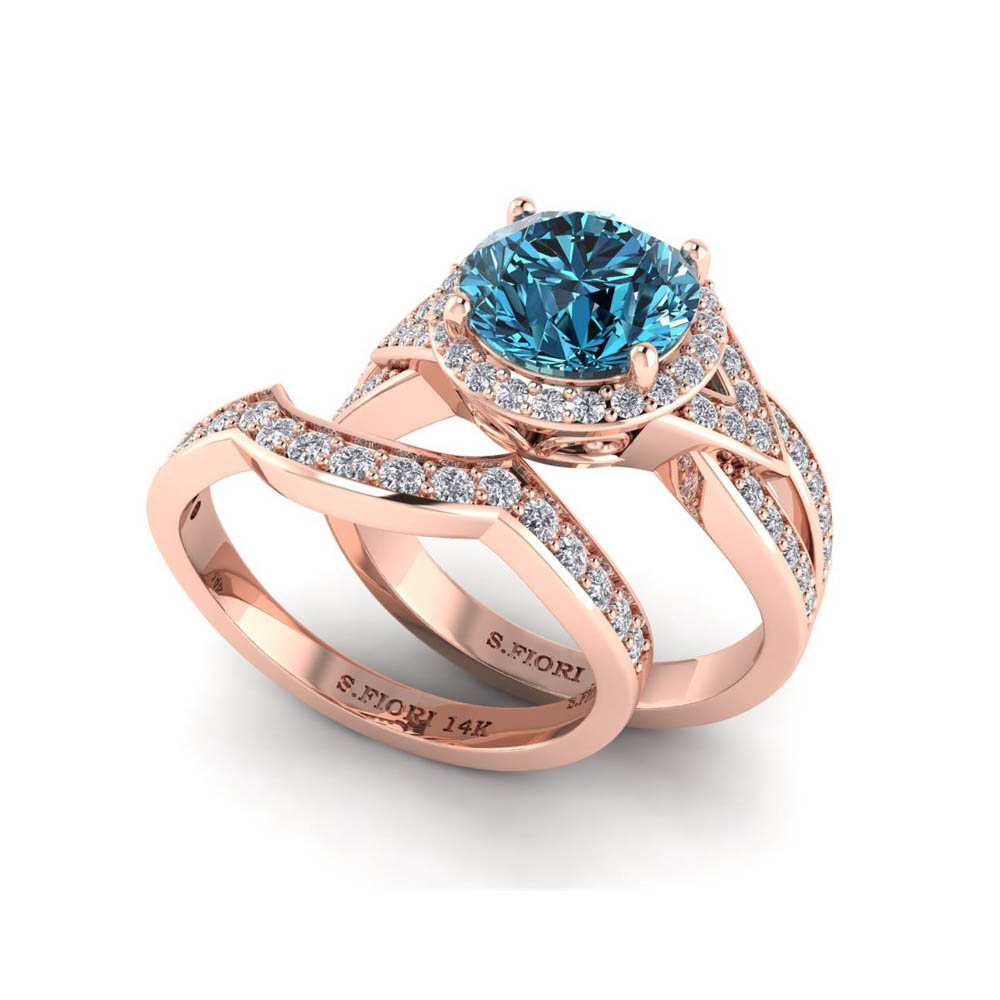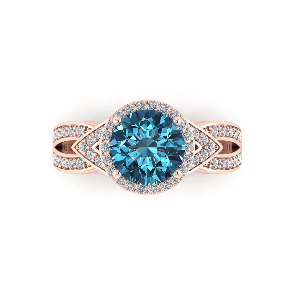 14K Gold Blue Diamond Enhanced Color Bridal Ring Featuring 1.87 cts Round Brilliant Cut Blue Diamond Enhanced Color surrounded by 0.53 cts Round Shaped White Diamond