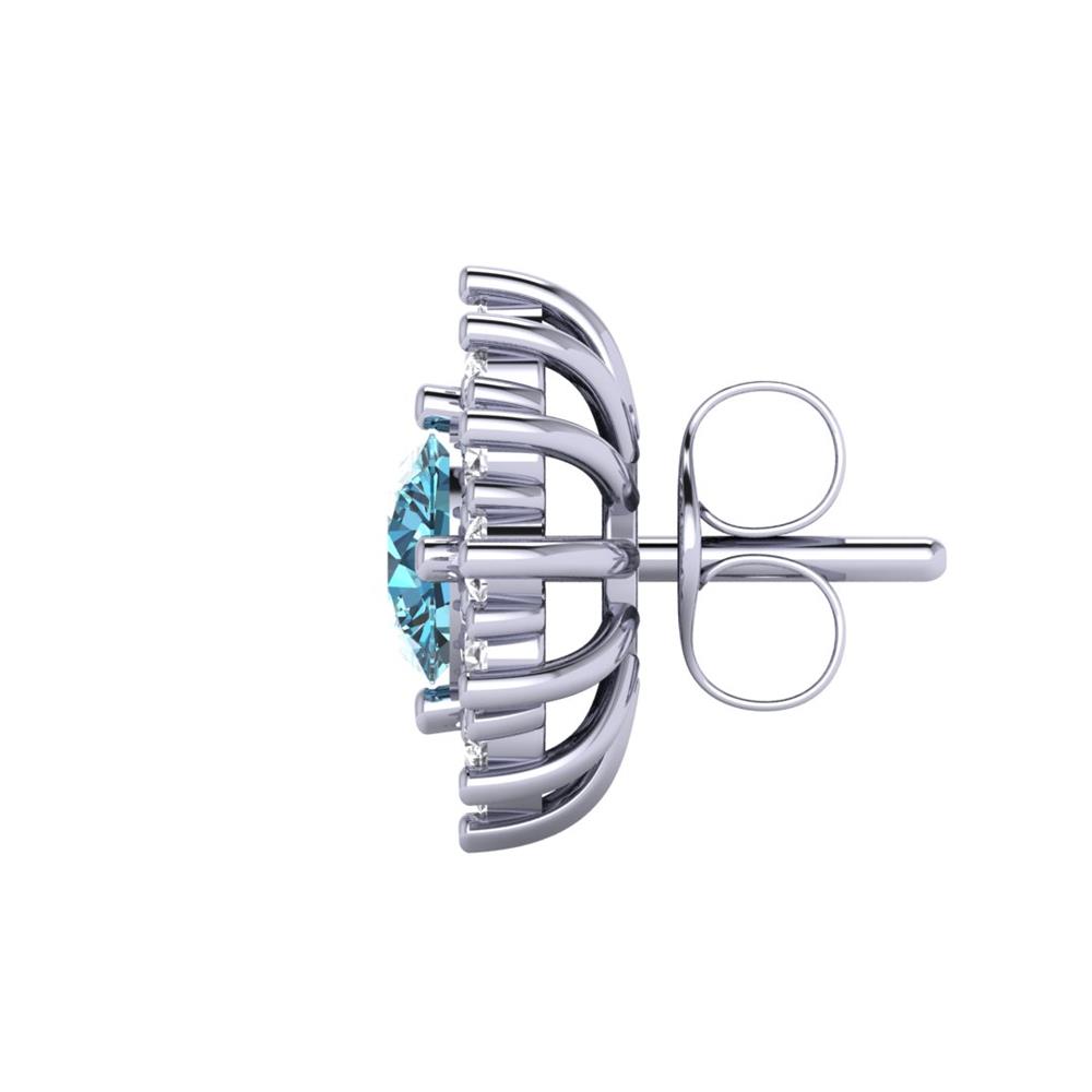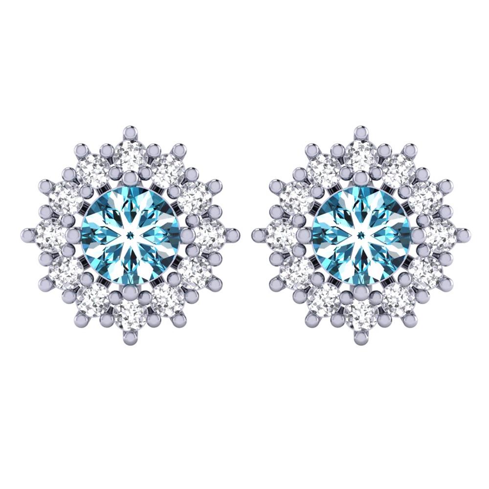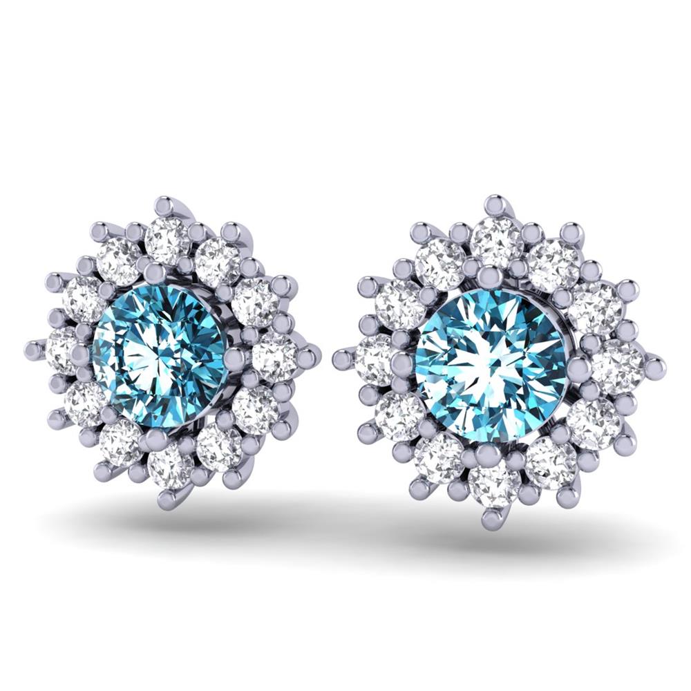 14K Gold Blue Diamond Enhanced Color Earrings Featuring 1.20 cts Round Brilliant Cut Blue Diamond Enhanced Color Surrounded by 0.52 cts Round Cut White Diamond