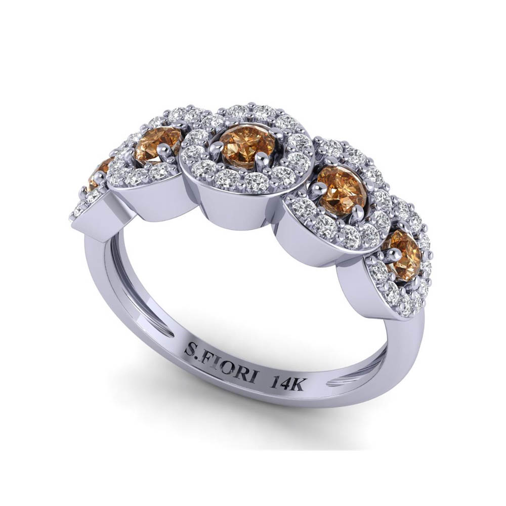 14K Gold Blue Diamond Enhanced Color Ring Featuring 0.35 Cts Round Brilliant Cut Blue Diamond Enhanced Color Surrounded by 0.43 Cts Round Cut White Diamond