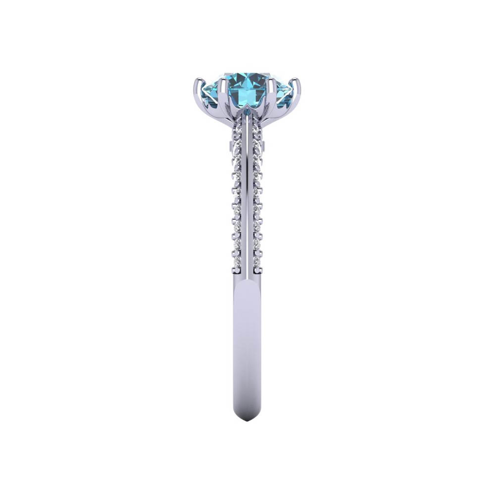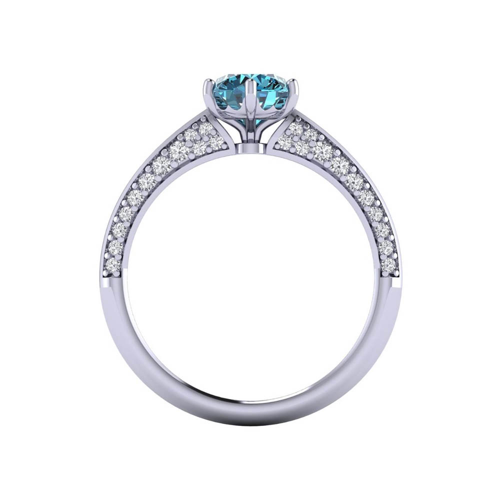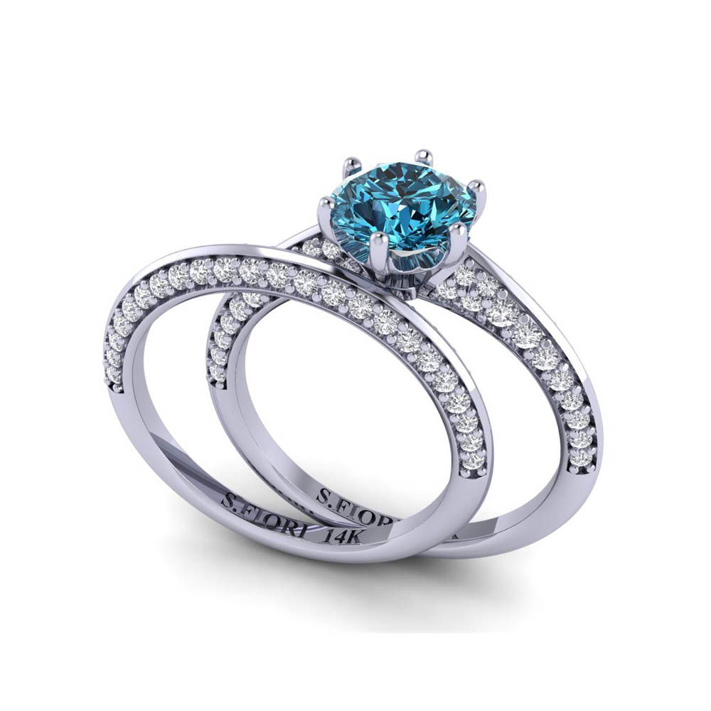 14K Gold Blue Diamond Enhanced Color Bridal Ring Featuring 1.00 cts Round Shaped Blue Diamond Enhanced Color Surrounded by 0.63 cts Round Shaped White Diamond