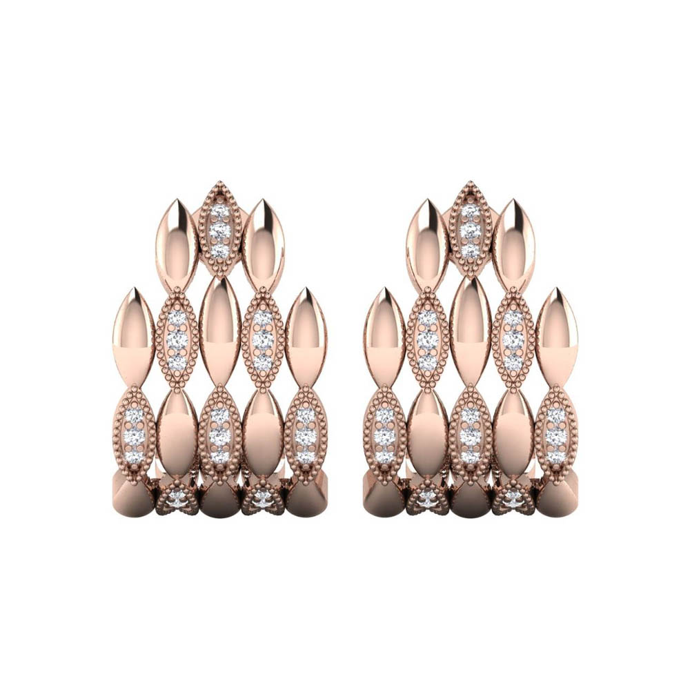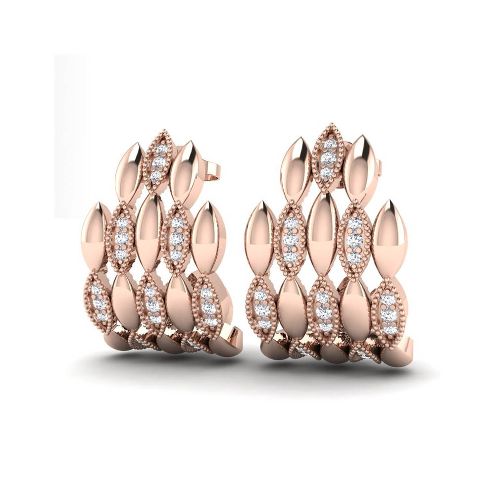 14K Gold White Diamond Earrings Featuring 0.48 cts Round Shaped White Diamond