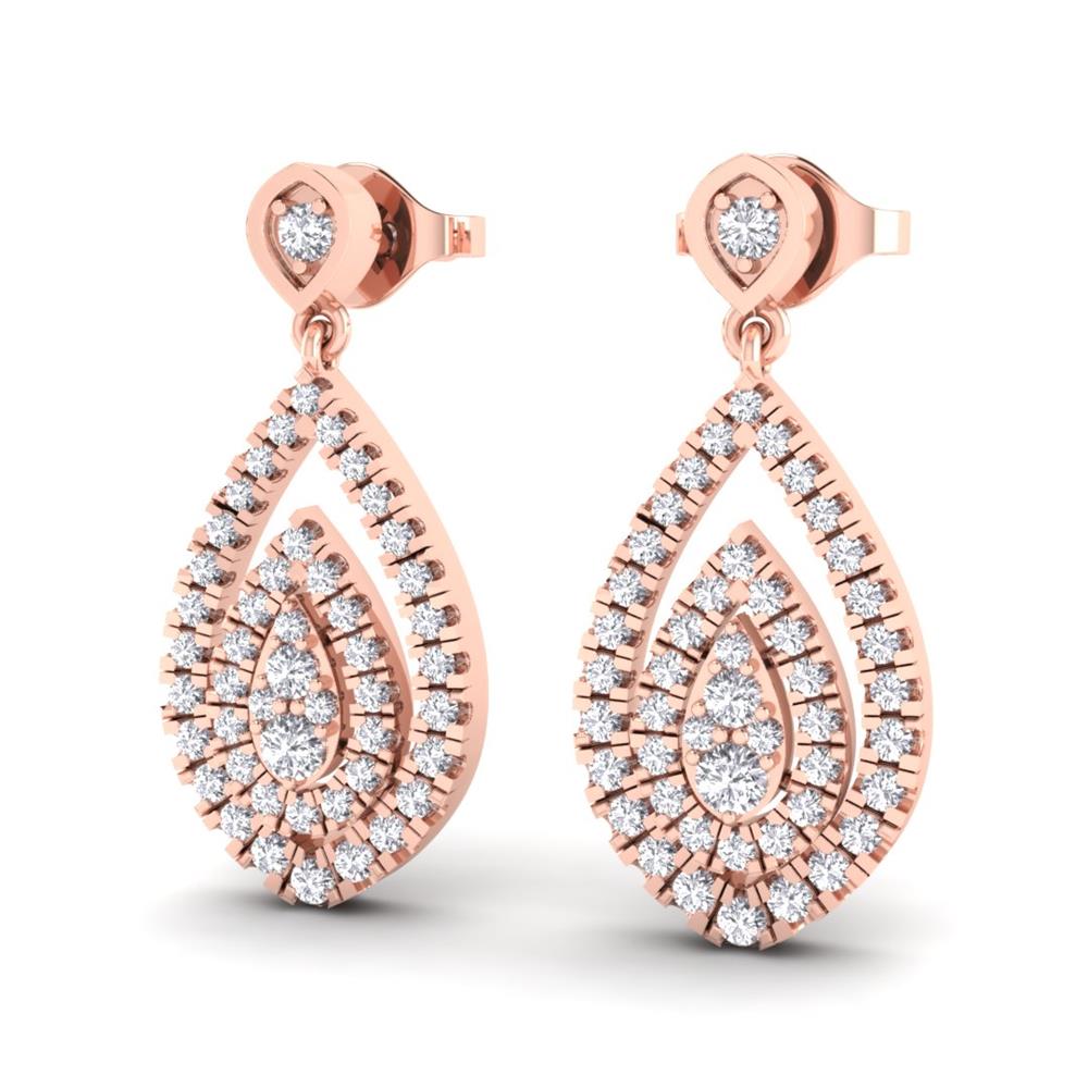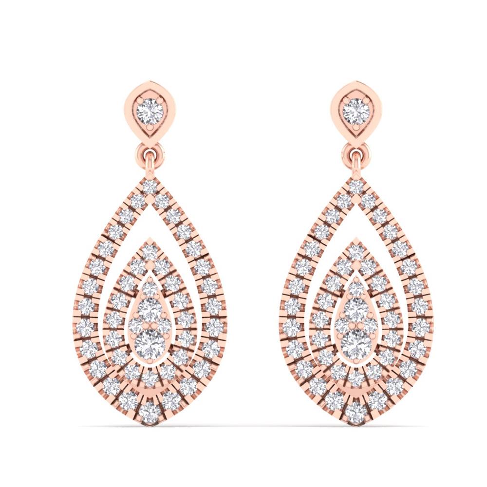 14K Gold White Diamond Earrings Featuring 0.67 cts Round Shaped White Diamond