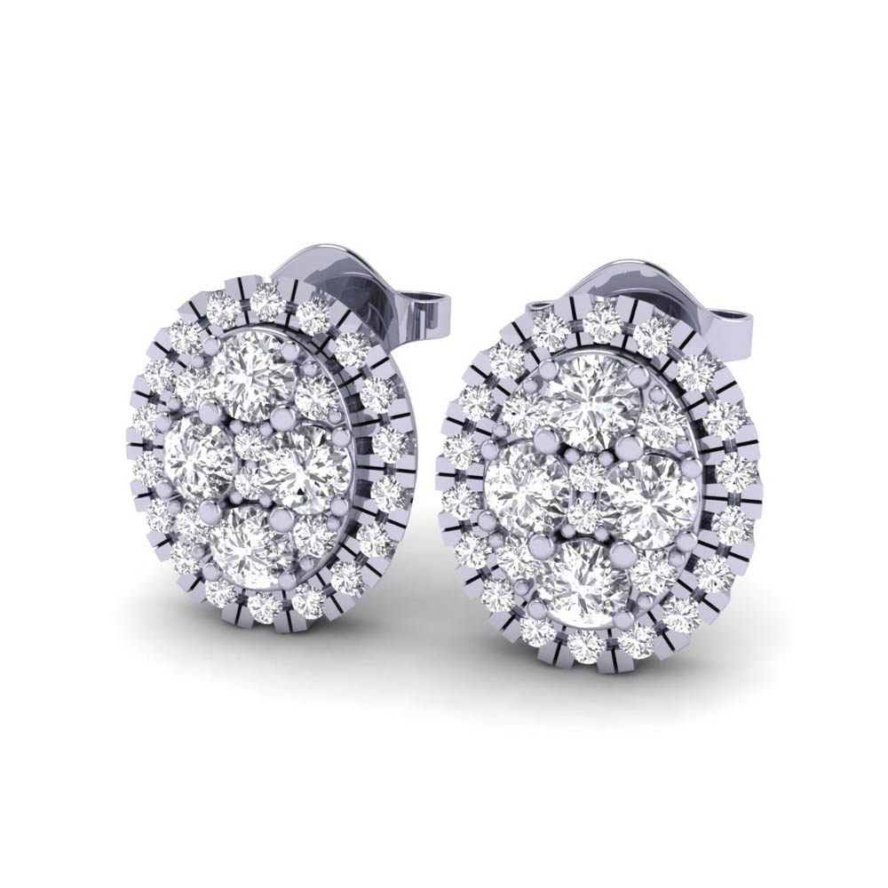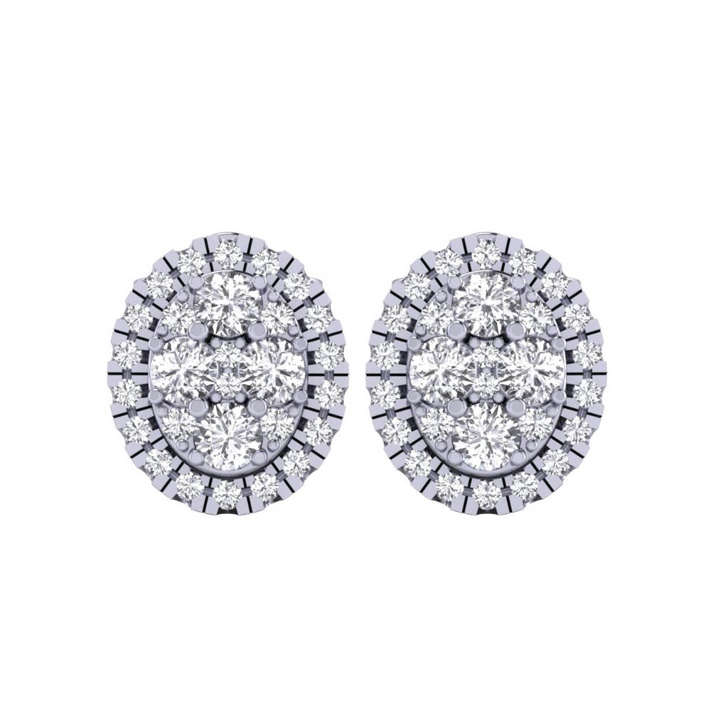 14K Gold White Diamond Earrings Featuring 0.80 cts Round Shaped White Diamond