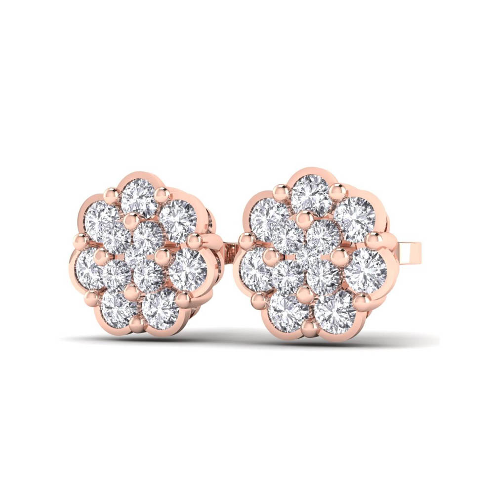 14K Gold White Diamond Earrings Featuring 0.81 cts Round Shaped White Diamond