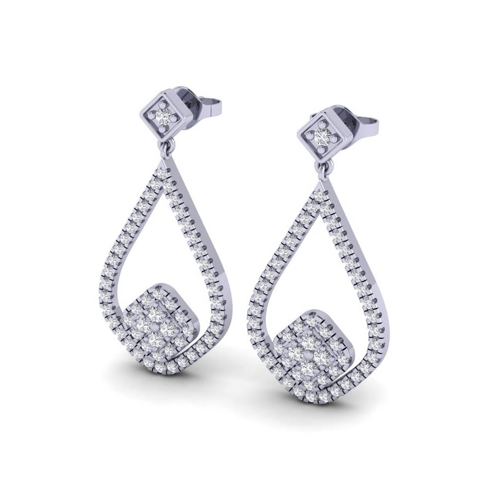 14K Gold White Diamond Earrings Featuring 0.87 cts Round Shaped White Diamond