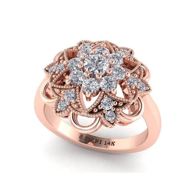 14K Gold Stunning White Diamond Flower Collection Rings Featuring 0.14 Cts Round Shaped White Diamond Surrounded By 0.482 cts Round Shaped White Diamond