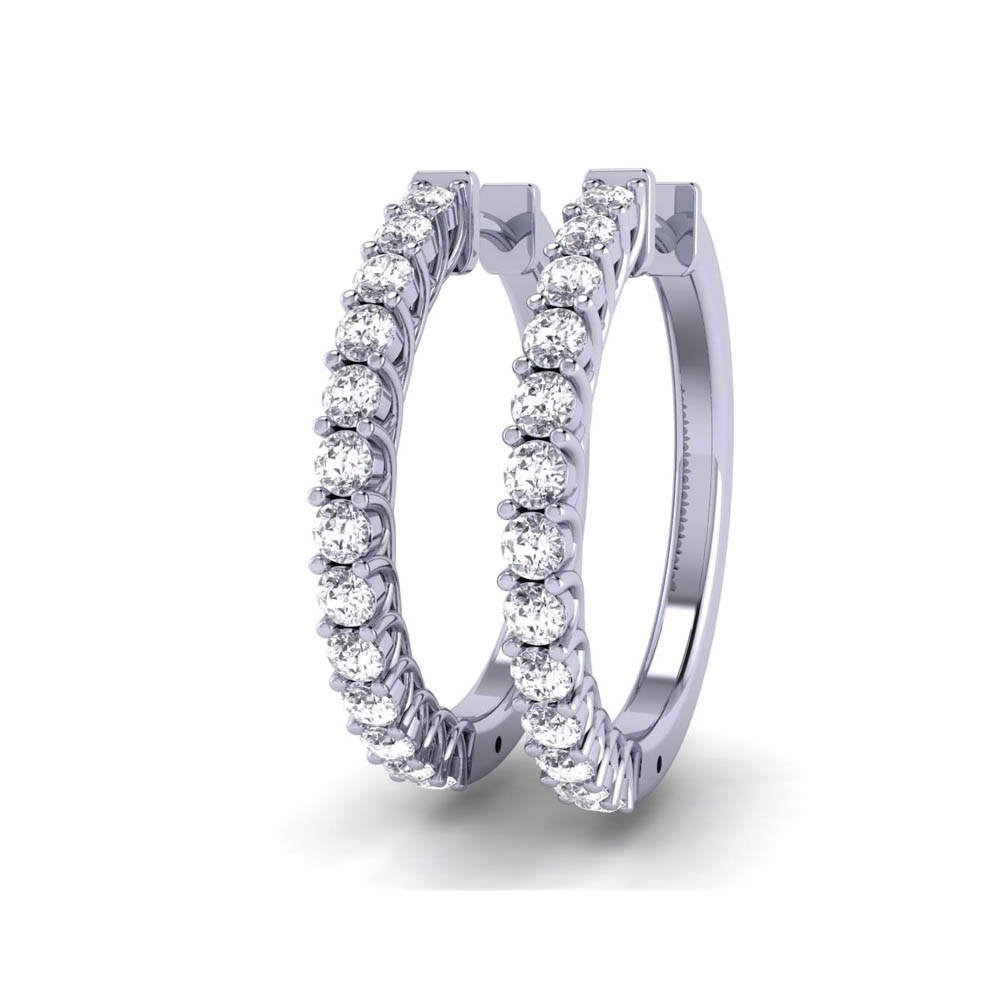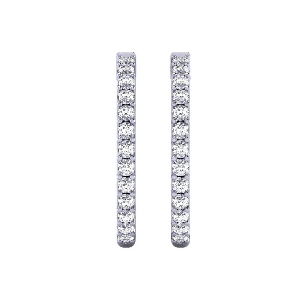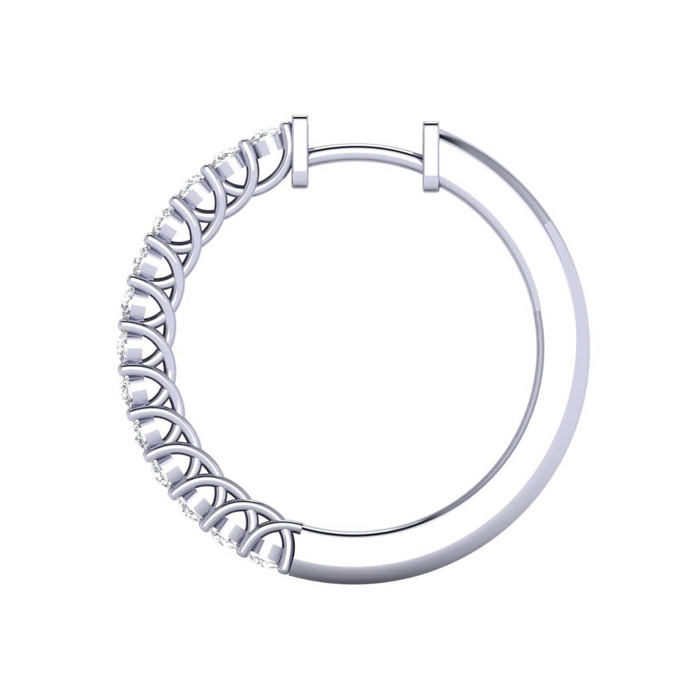 14K Gold White Diamond Hoop Earrings Featuring 0.65 cts Round Shaped White Diamond