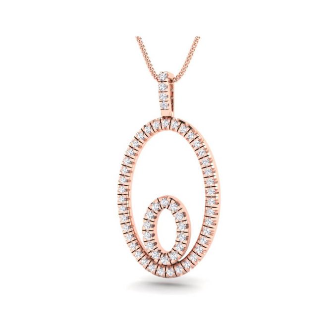 14K Gold White Diamond Pendant Featuring 0.03 Cts Round Cut White Diamond Surrounded by 0.03 Cts Round Cut White Diamond