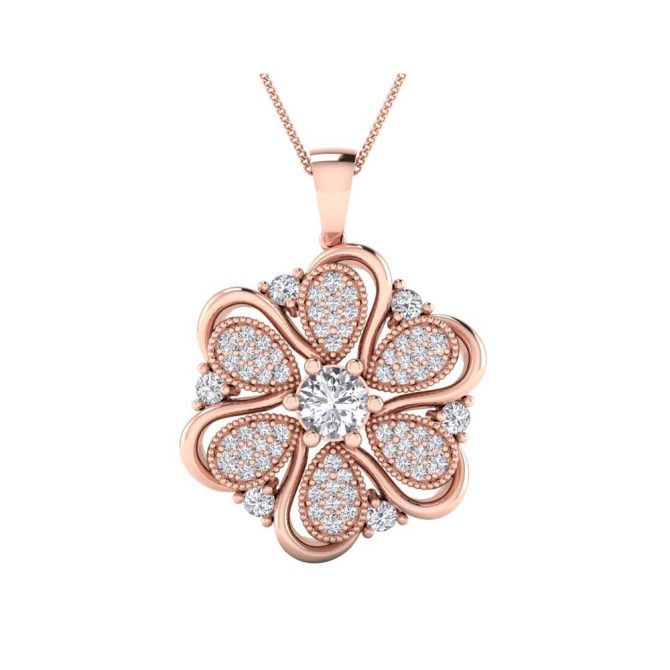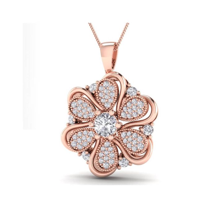 14K Gold Stunning White Diamond Pendant Featuring 0.30 Cts Round Shaped White Diamond Surrounded by 0.4662 cts Round Shaped White Diamond