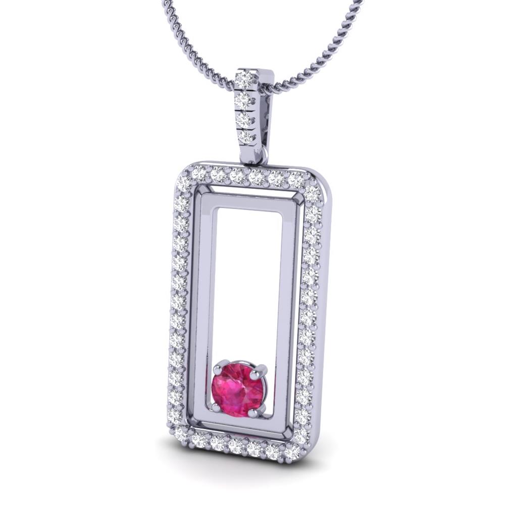 14K Gold Translucent Blue Sapphire Pendant Featuring 0.40 Cts Round Shaped Blue Sapphire Surrounded by 0.45 cts Round Shaped White Diamond
