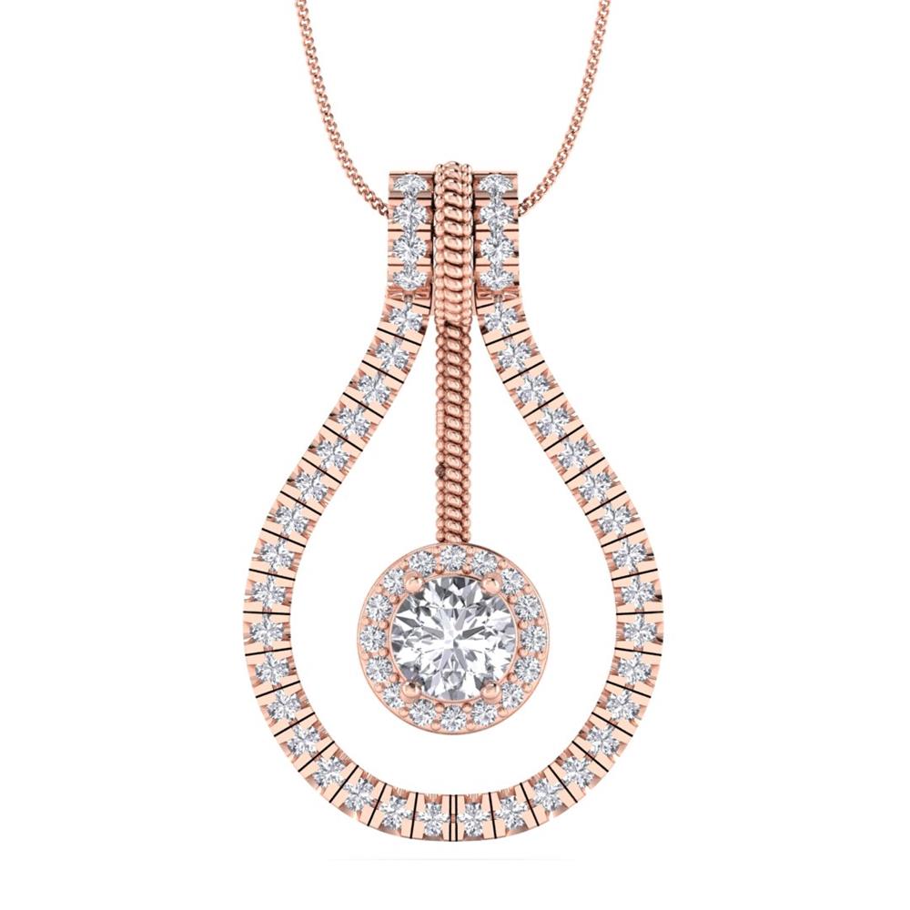 14K Gold White Diamond Pendant Featuring 1.48 cts Round Shaped White Diamond