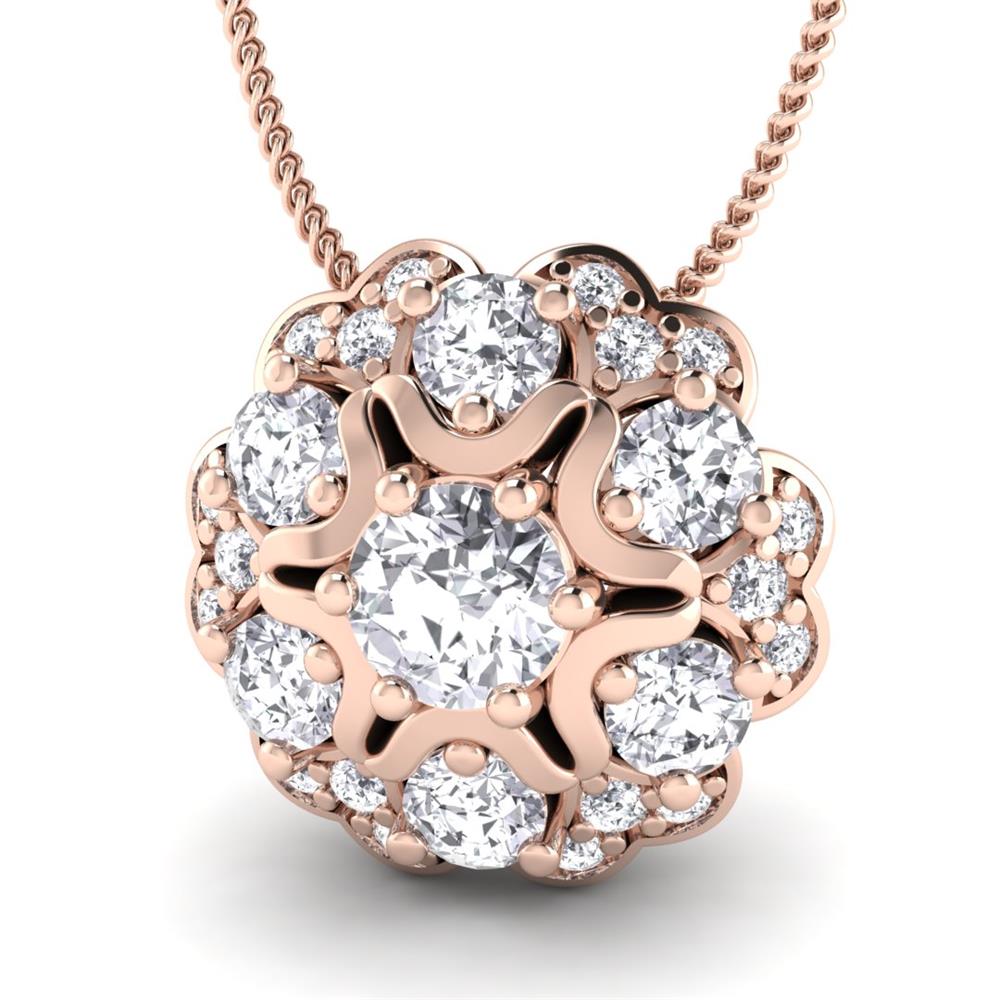 14K Gold Stunning White Diamond Flower Collection Pendant Featuring 0.75 Cts Round Shaped White Diamond Surrounded by 0.7524 cts Round Shaped White Diamond