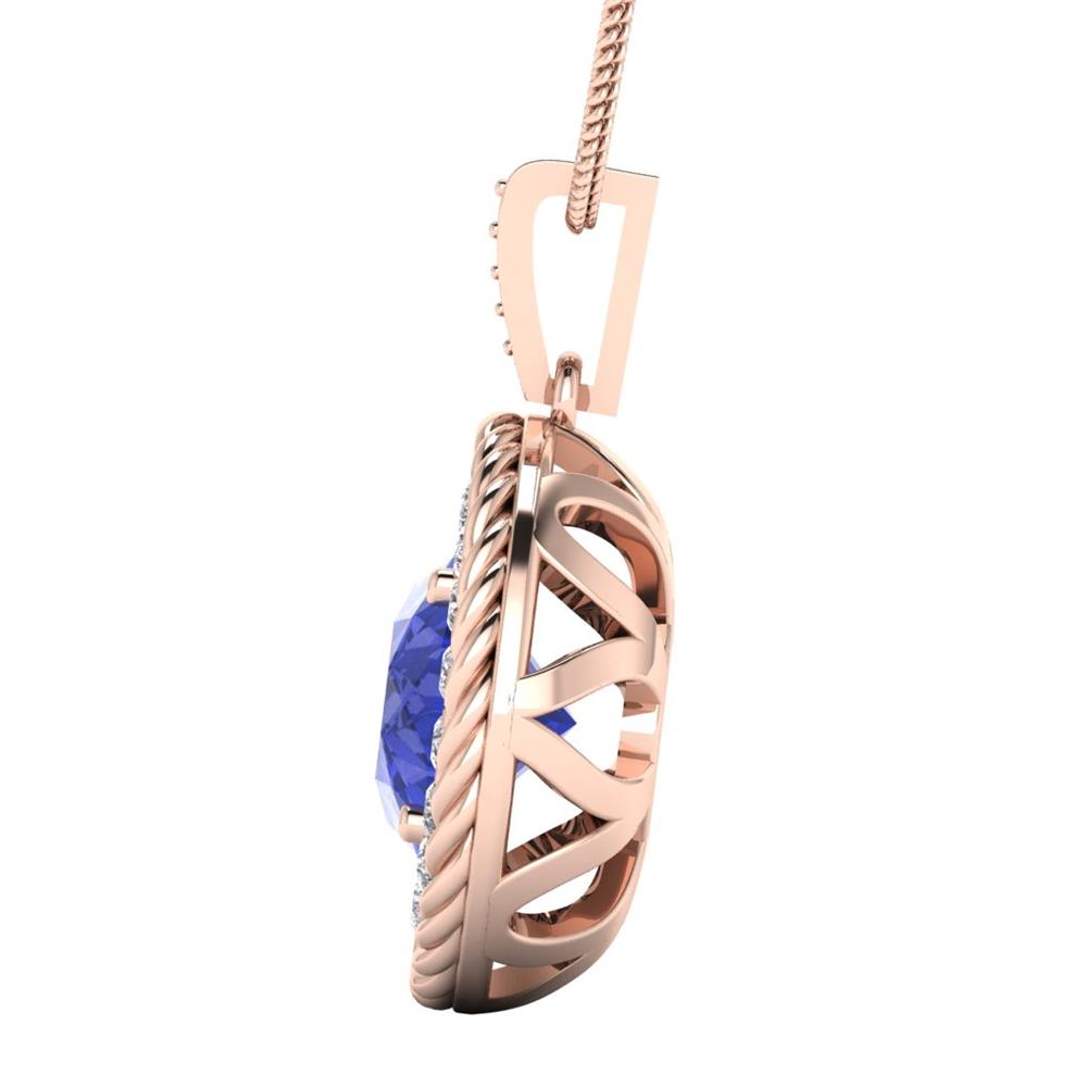 14K Gold Translucent Blue Sapphire Pendant Featuring 3.61 Cts Round Shaped Blue Sapphire Surrounded by 0.58 cts Round Shaped White Diamond