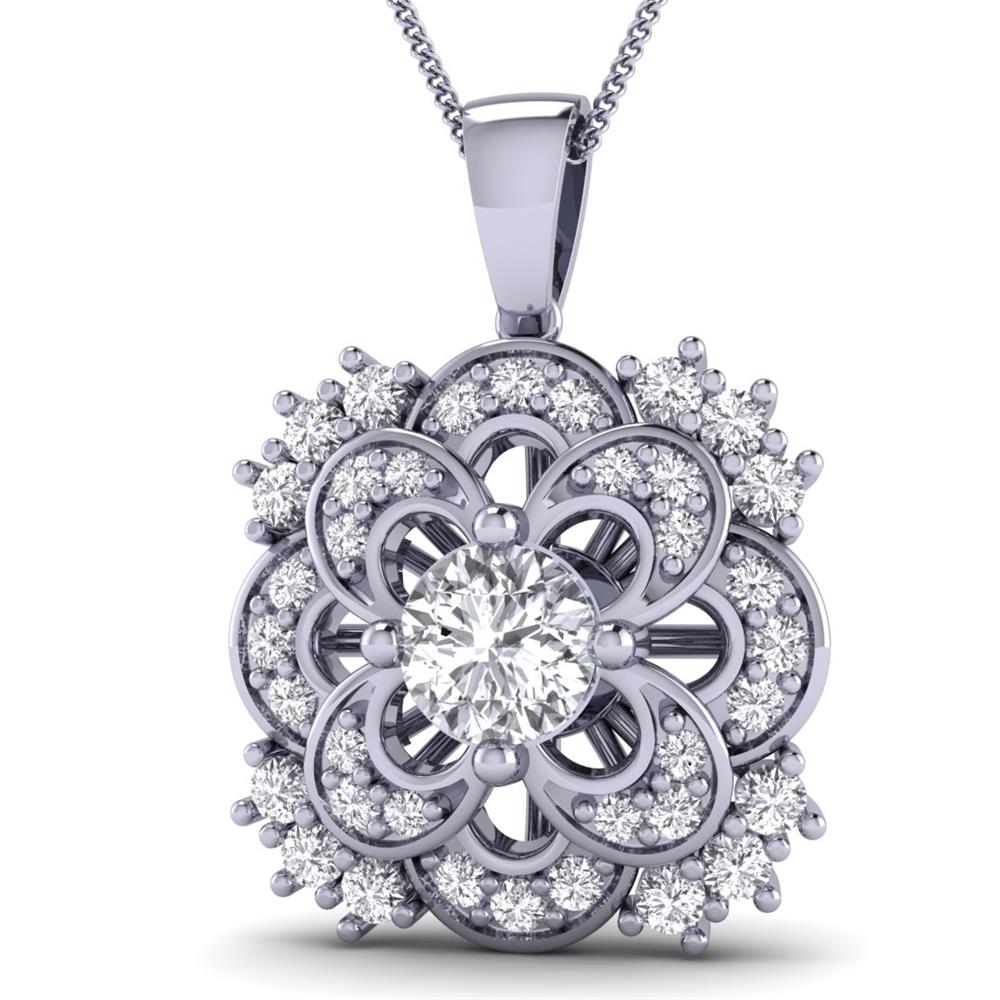 14K Gold Stunning White Diamond Pendants Featuring 0.75 Cts Round Shaped White Diamond Surrounded by 0.3272 cts Round Shaped White Diamond