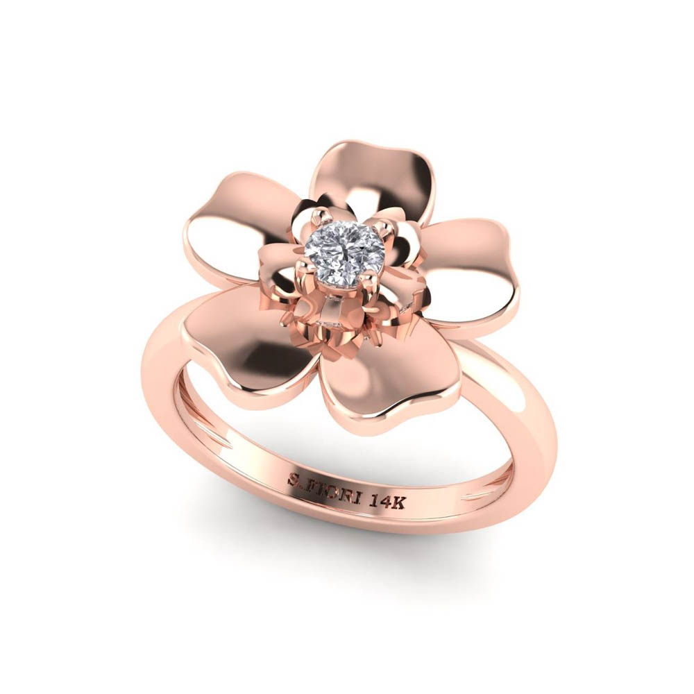14K Gold Stunning White Diamond Ring Featuring 0.12 Cts Round Shaped Stunning White Diamond