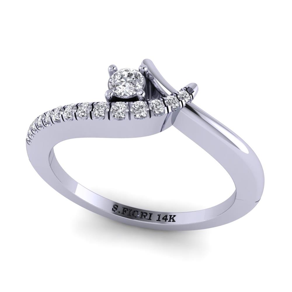 14K Gold Stunning White Diamond Ring Featuring 0.07 CTW Round Shaped Stunning White Diamond surrounded by 0.15 cts Round Shaped White Diamond on the sides.