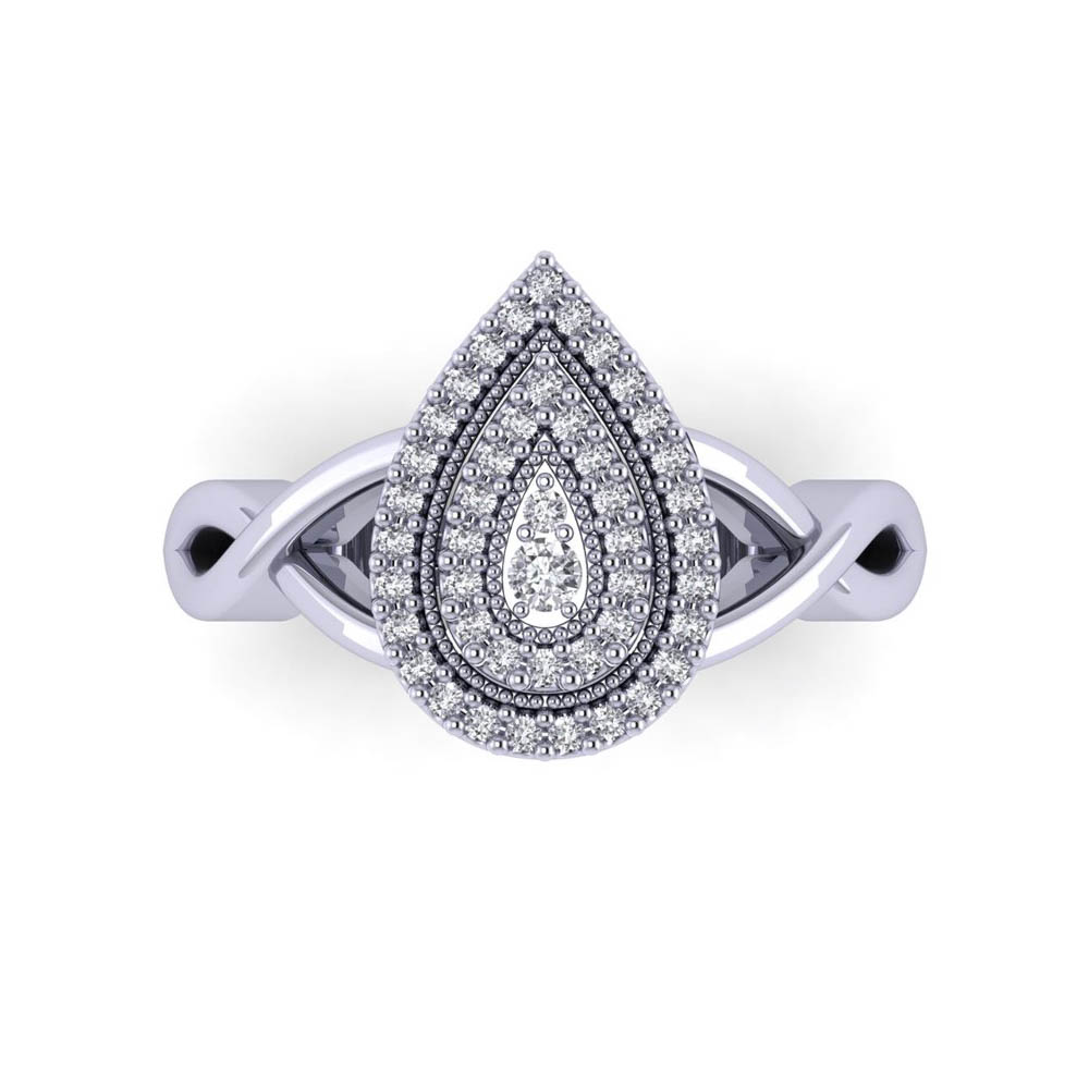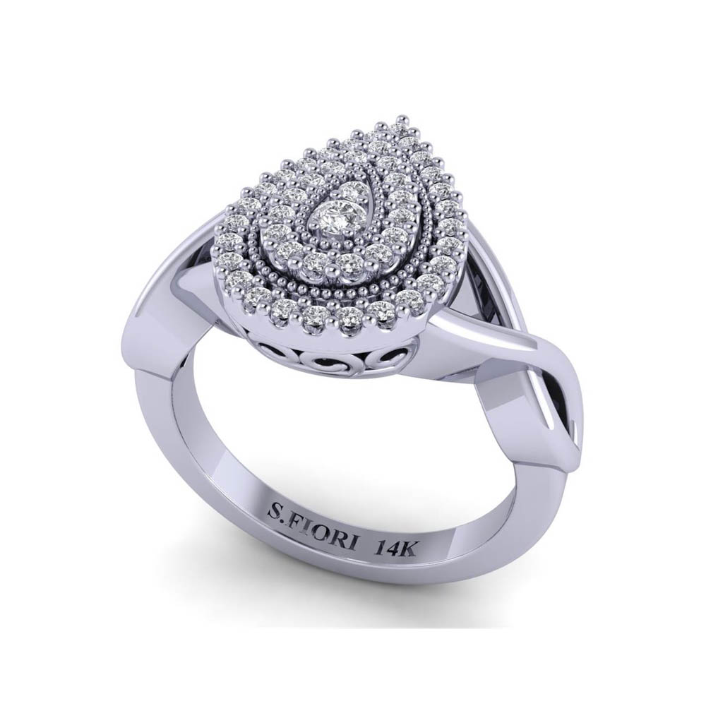14K Gold Stunning White Diamond Ring Featuring 0.04 ct Round Shaped Stunning White Diamond surrounded by 0.27 cts Round Shaped White Diamond