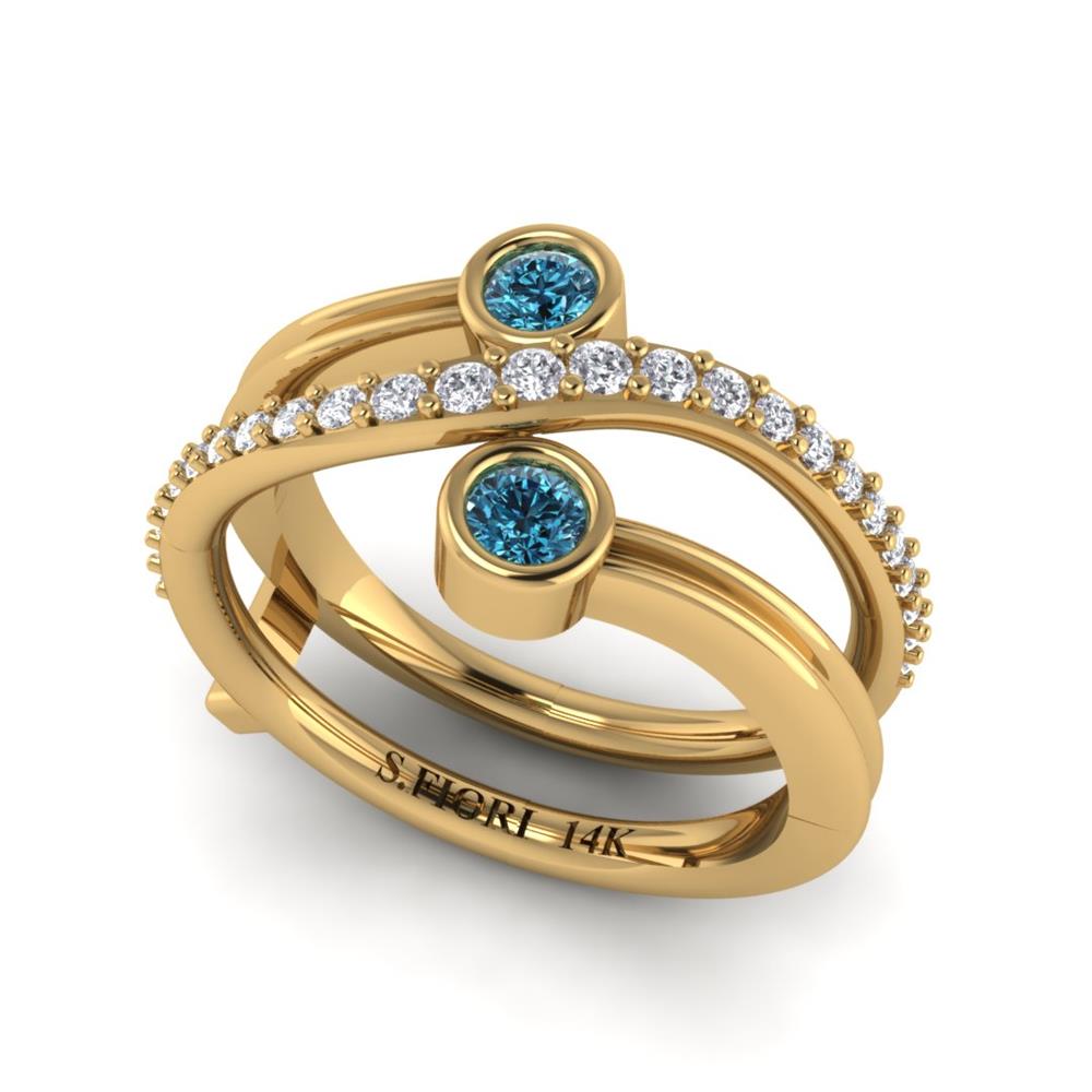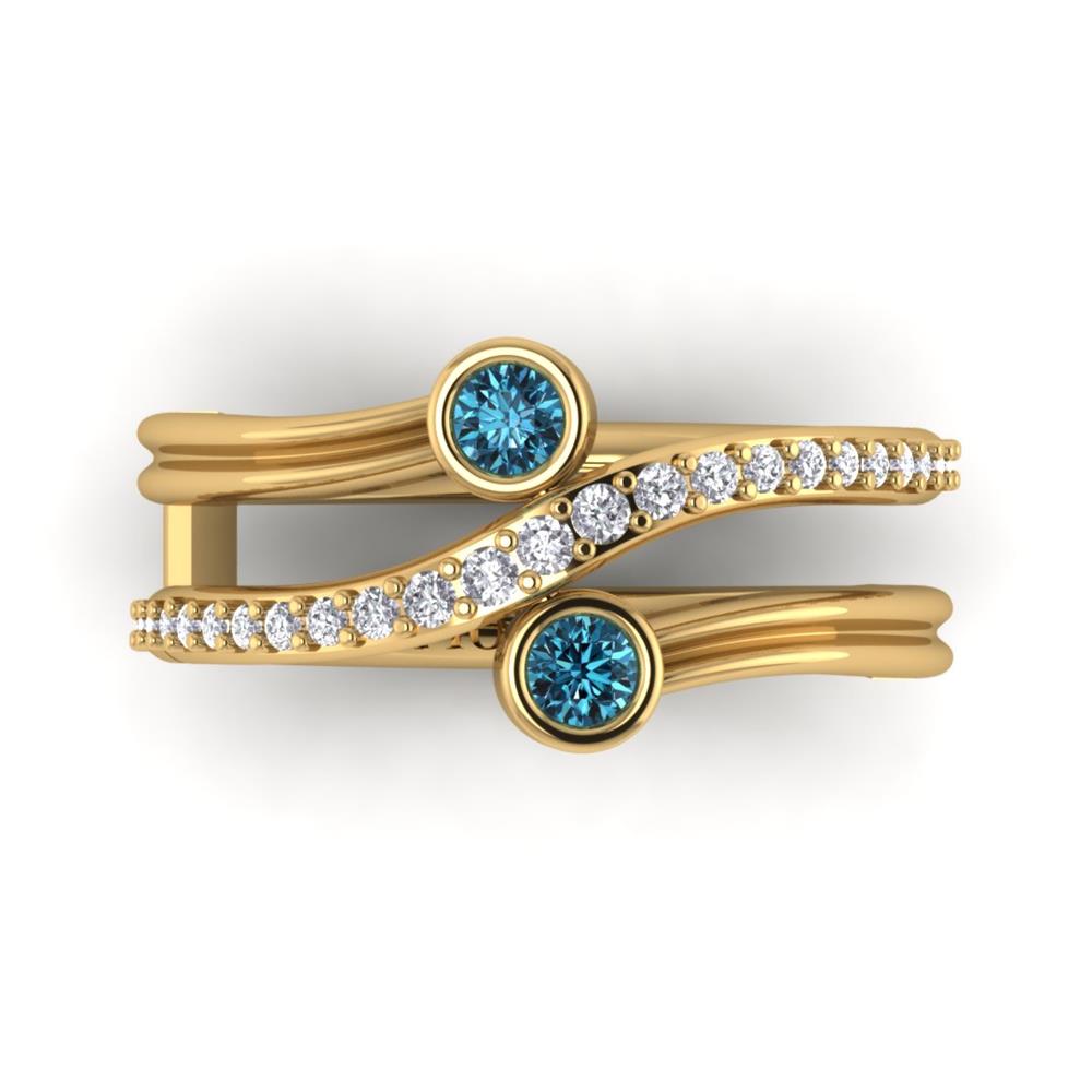14K Gold Blue Diamond Enhanced Color Ring Featuring 0.20 Round Shaped Blue Diamond Enhanced Color surrounded by 0.05 Round White Diamond