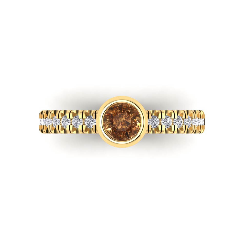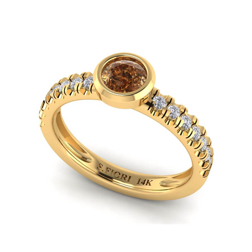 14K Gold Blue Diamond Enhanced Color Ring Featuring 0.40 Round Shaped Blue Diamond Surrounded by 0.22 Cts Round White Diamond