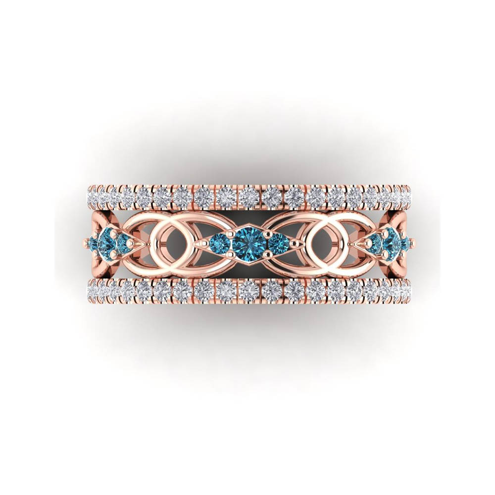 14K Gold Blue Diamond Enhanced Color Ring Featuring 0.14 cts Round Shaped Blue Diamond Enhanced Color Surrounded by 0.50 cts Round Cut White Diamond